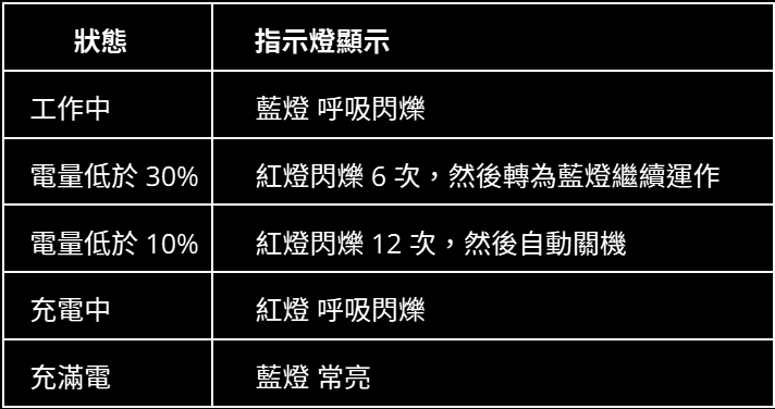 2. 充電時 紅燈呼吸閃爍,充滿後 藍燈恆亮。