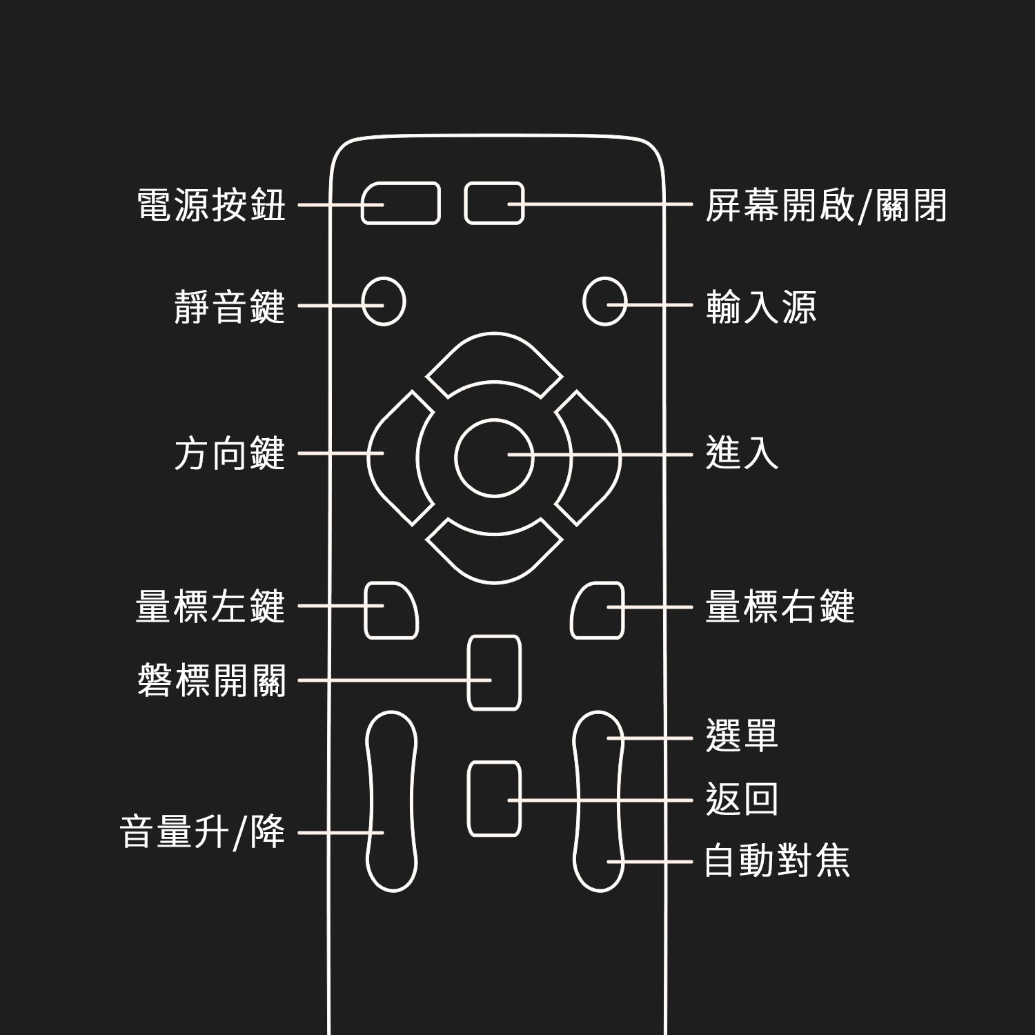 - 按下遙控器上的自動對焦按鈕,調整設備的焦距,使屏幕清晰 。