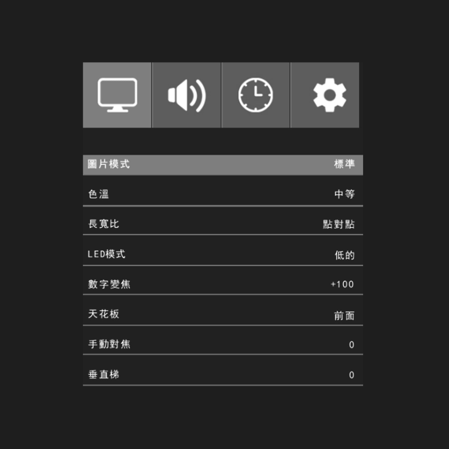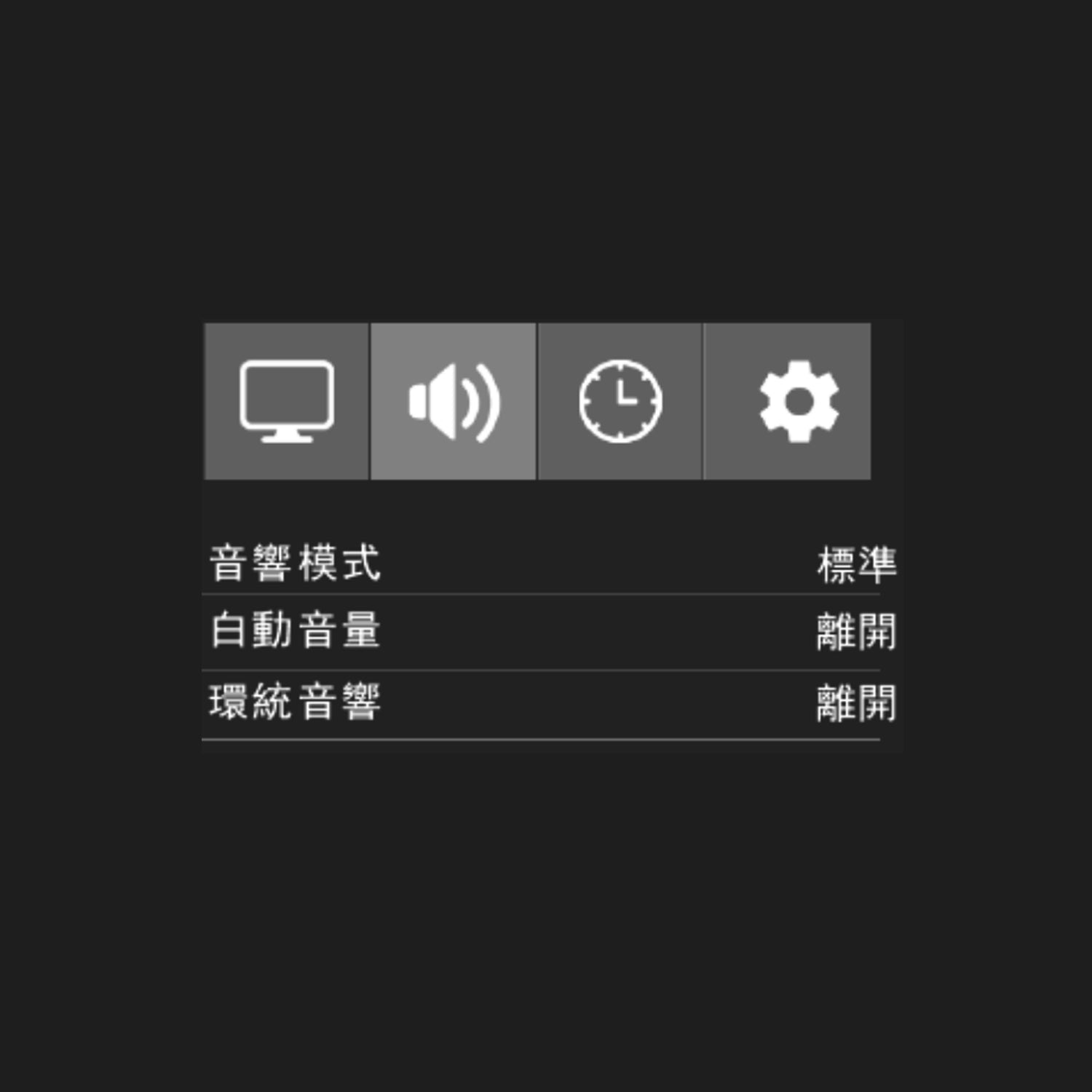 - 音響模式:標準 · 音樂 · 電影 · 體育 · 用戶