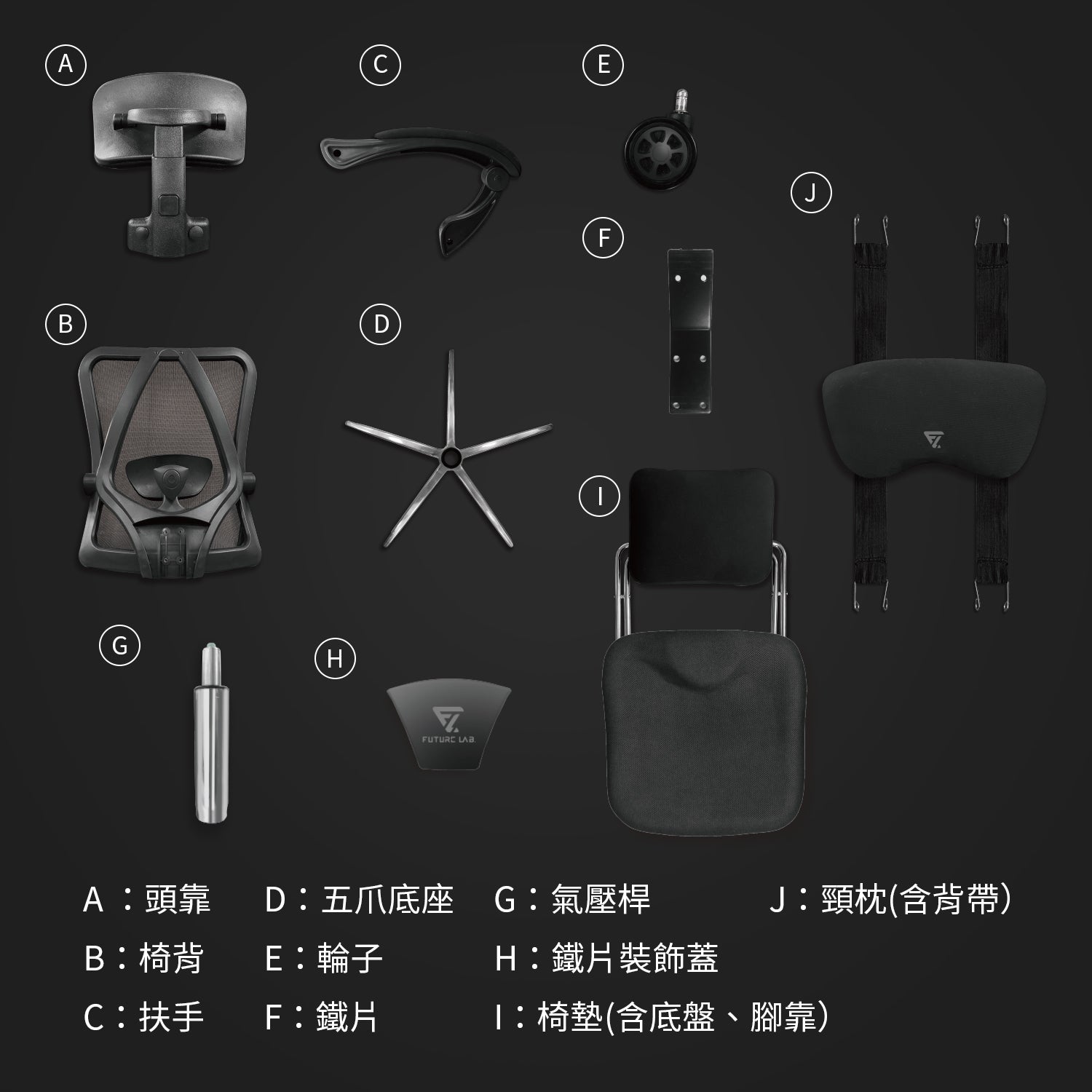 - 產品材質 : 椅墊-高彈海綿;椅背架-PVC塑膠;軸心 - 鋁;五爪-尼龍;輪子-PU輪。
