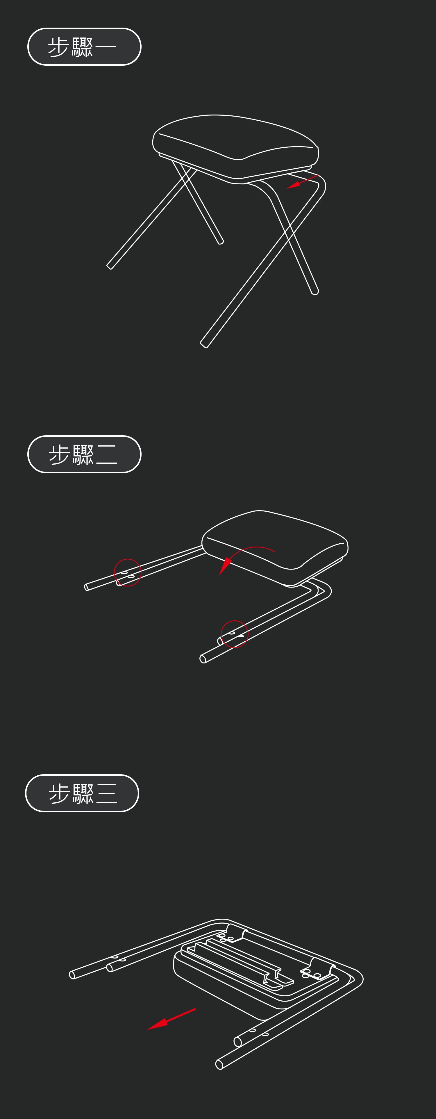 2.調低 : 上拉調整桿,利用身體重量即可使座椅下降