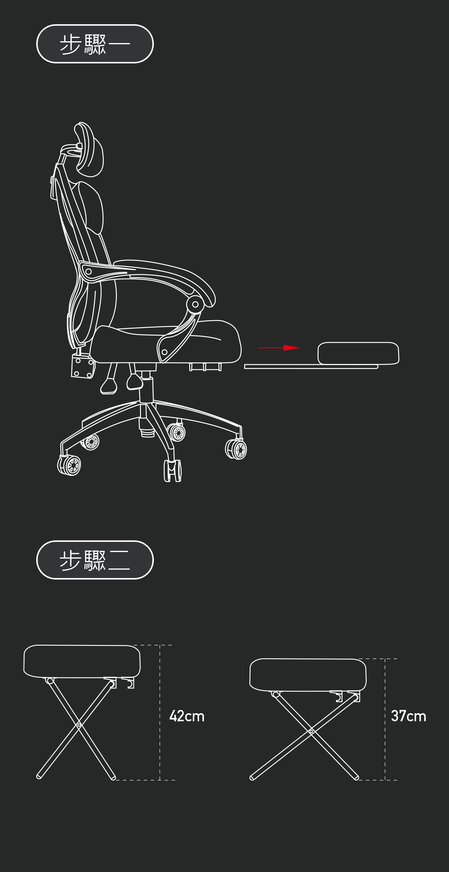 - 腳靠延伸使用時,除靠腳外請勿重壓、直接乘坐於腳靠上,以免造成商品損壞及人員受傷。
