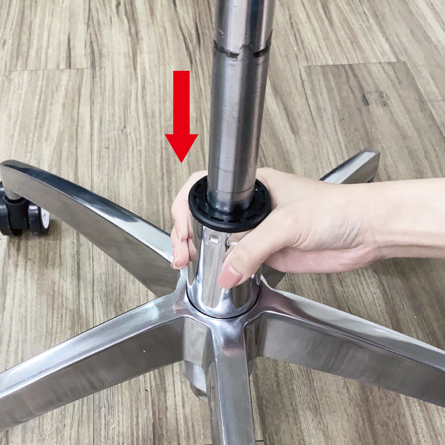2.將氣壓桿 Ⓖ 插入五爪底座 Ⓓ 的中間孔裡。