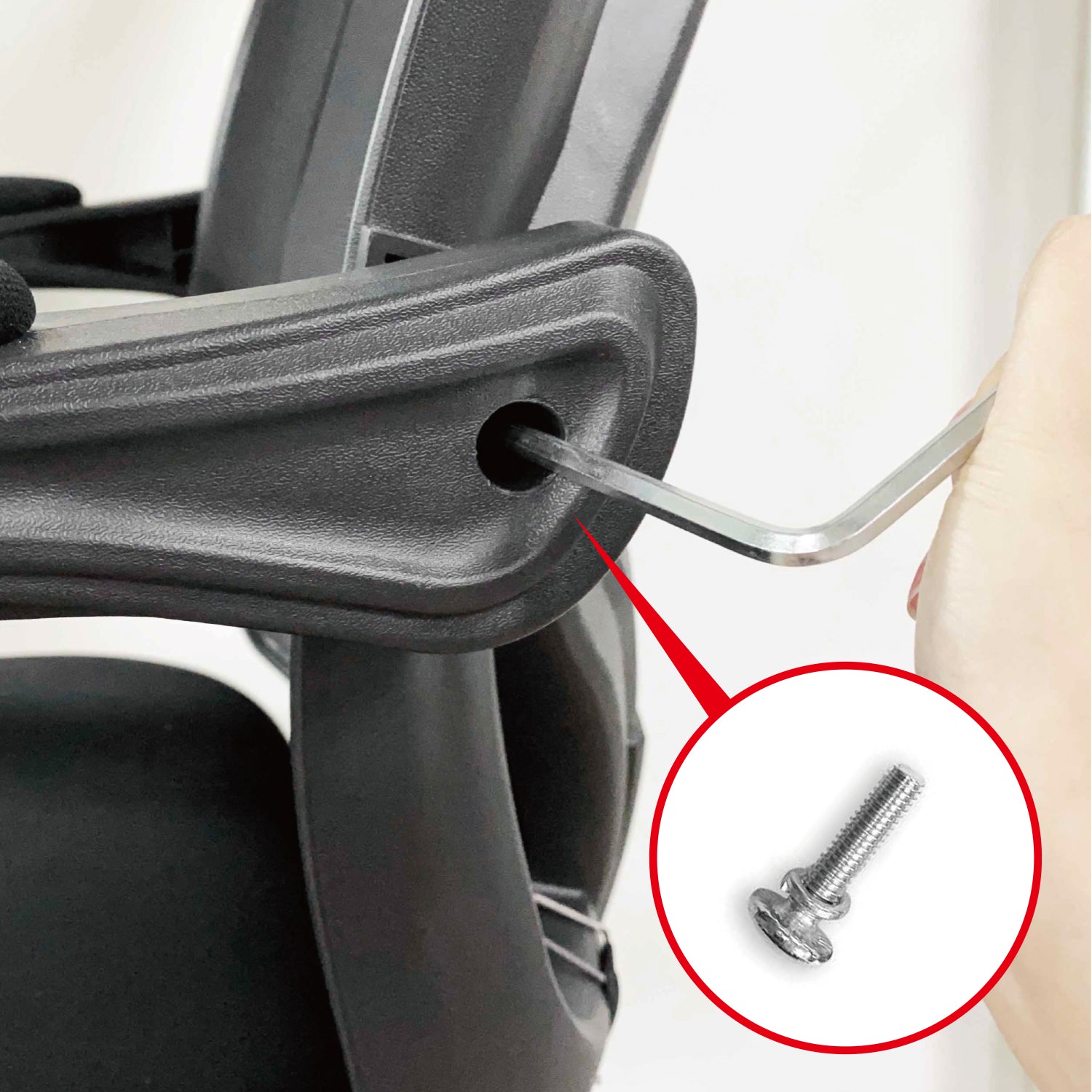 7.使用扶手螺絲 + 彈簧墊片 f-2 將扶手 Ⓒ 固定,再蓋上扶手螺絲蓋 d。