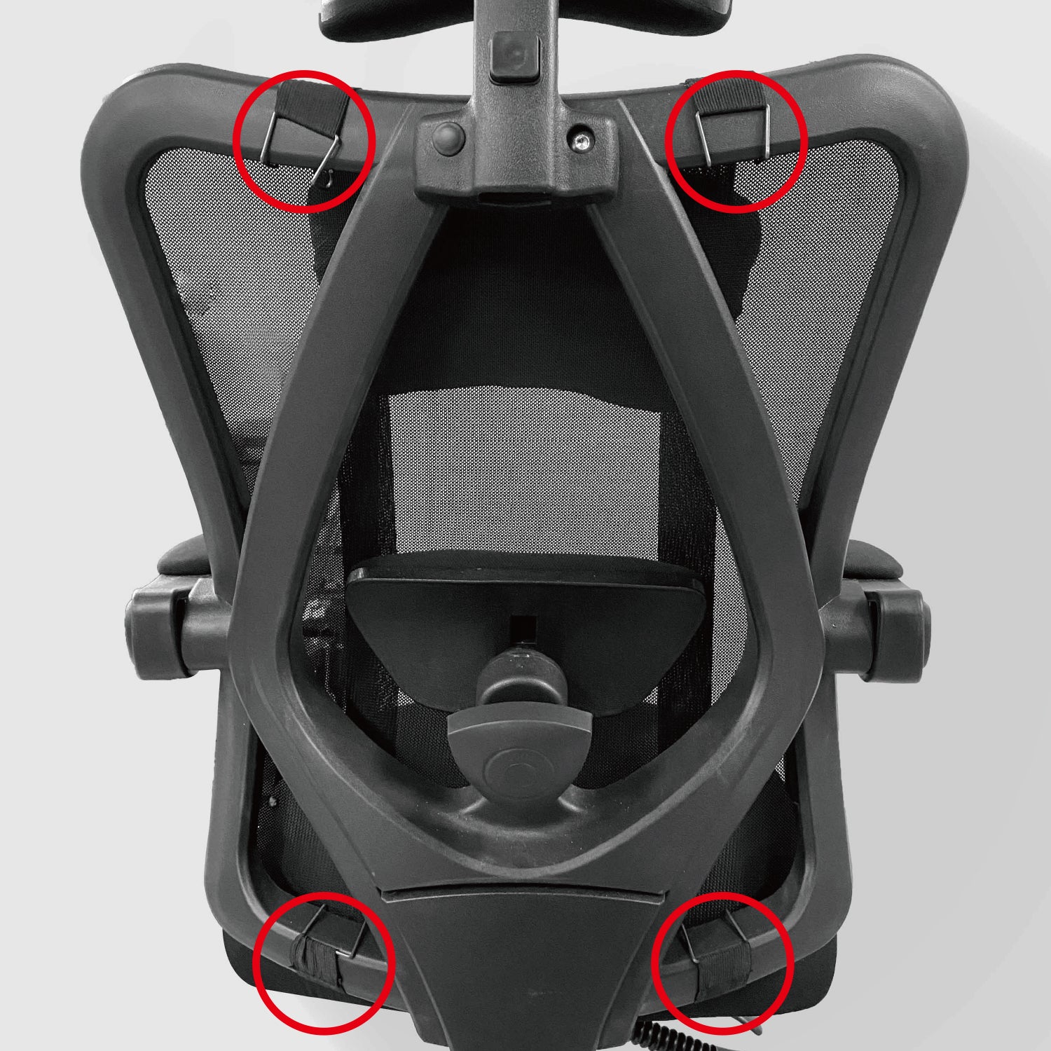 9.將背帶 Ⓙ 固定於椅背上下左右凹處,共4處。
