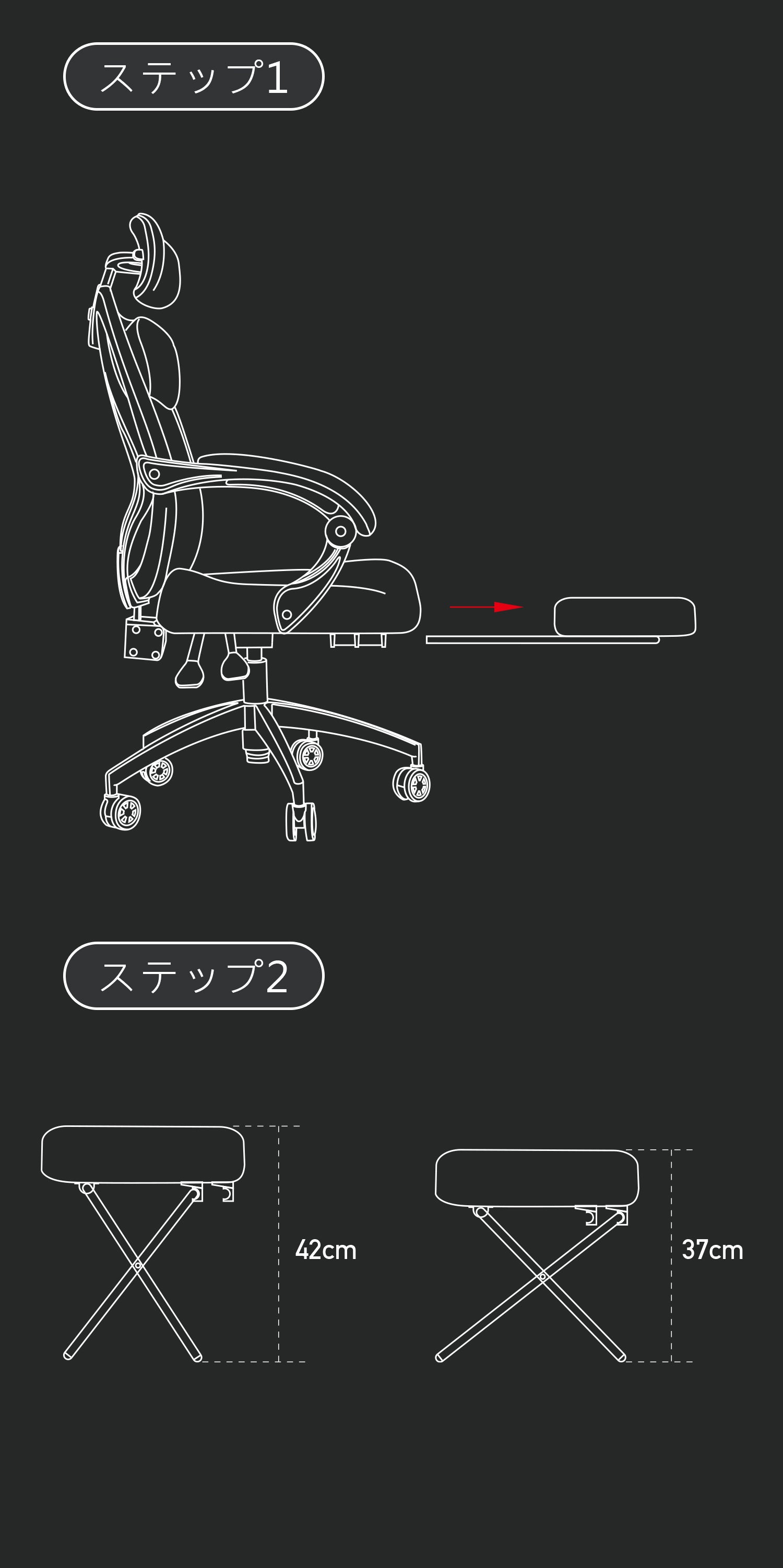 - フットレストを伸ばして使用する際は、足以外を乗せないでください。製品の損傷やけがの恐れがあります。