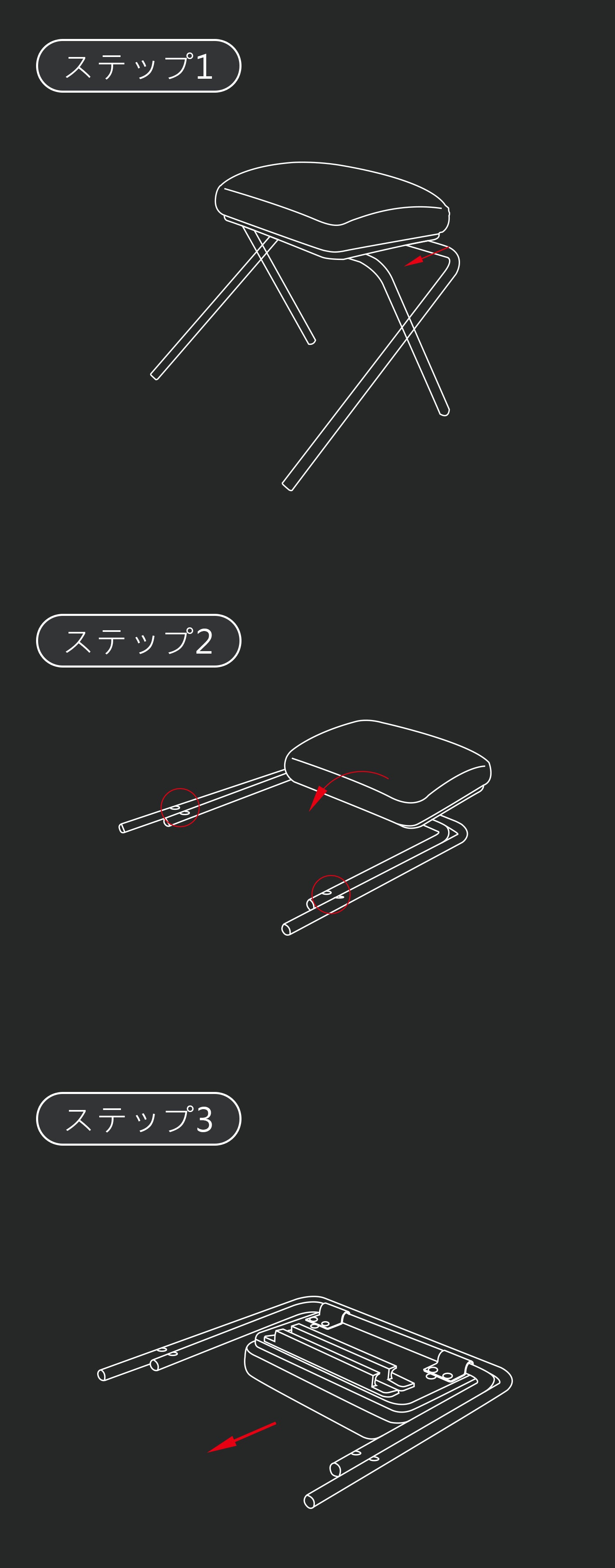 3. シートクッションの下のフレーム収納部に挿入し収納します。