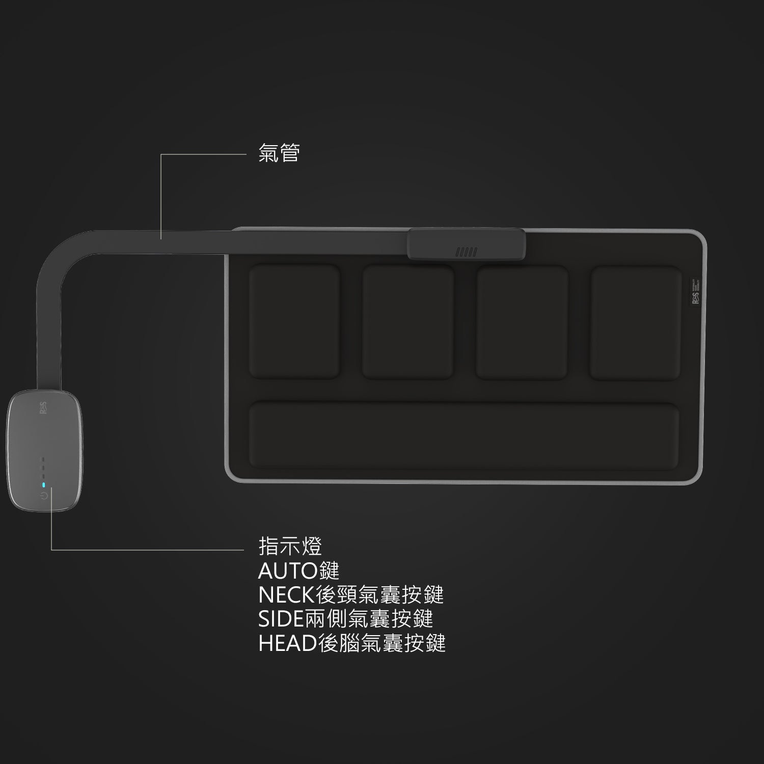 後頸支撐 調整後頸氣囊高度,支撐頸椎,放鬆肩頸。