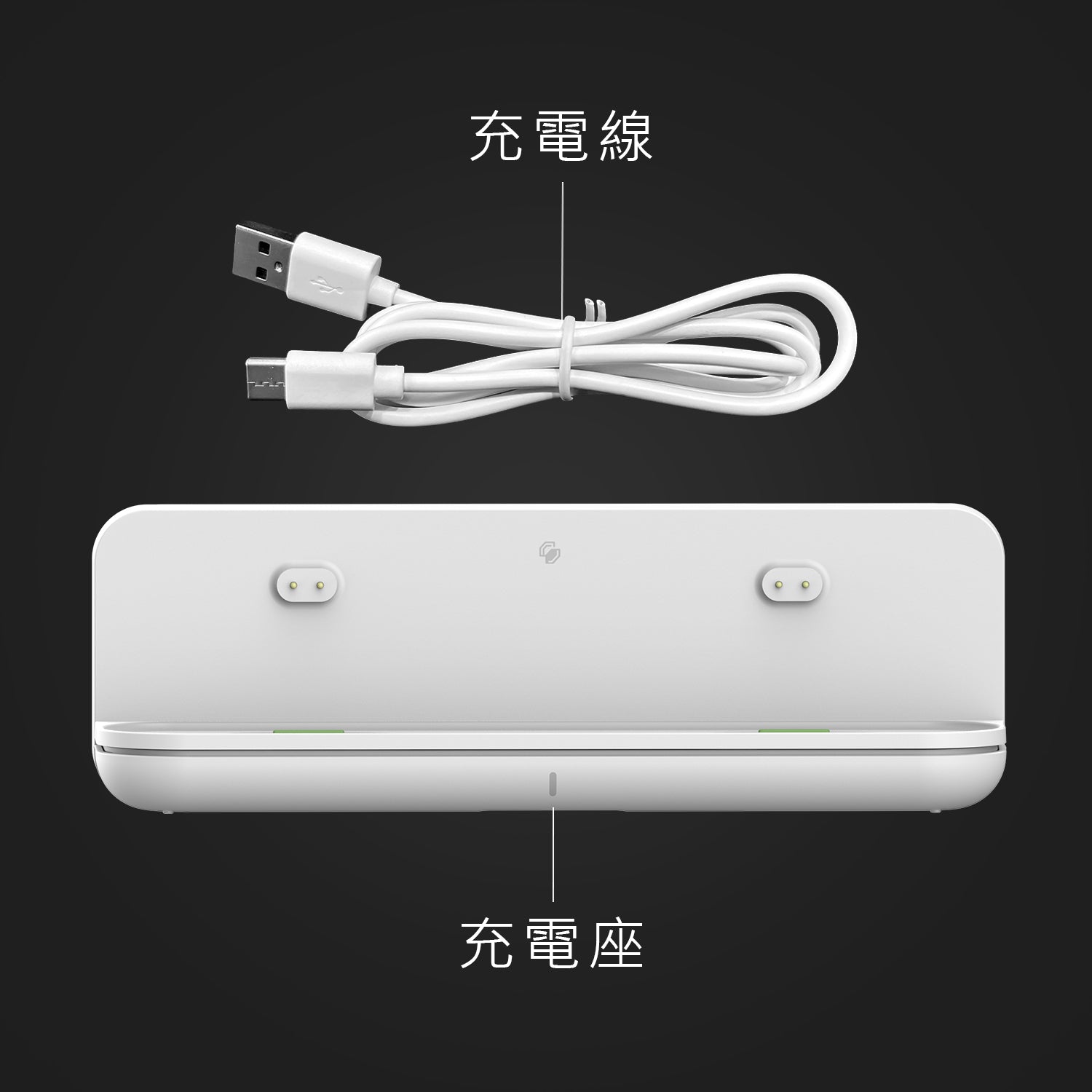 2.定期清潔充電 pin 針和底座的接觸點,防止灰塵或異物堆積,確保良好充電效果。可使 用軟布或棉花棒清理 pin 針。