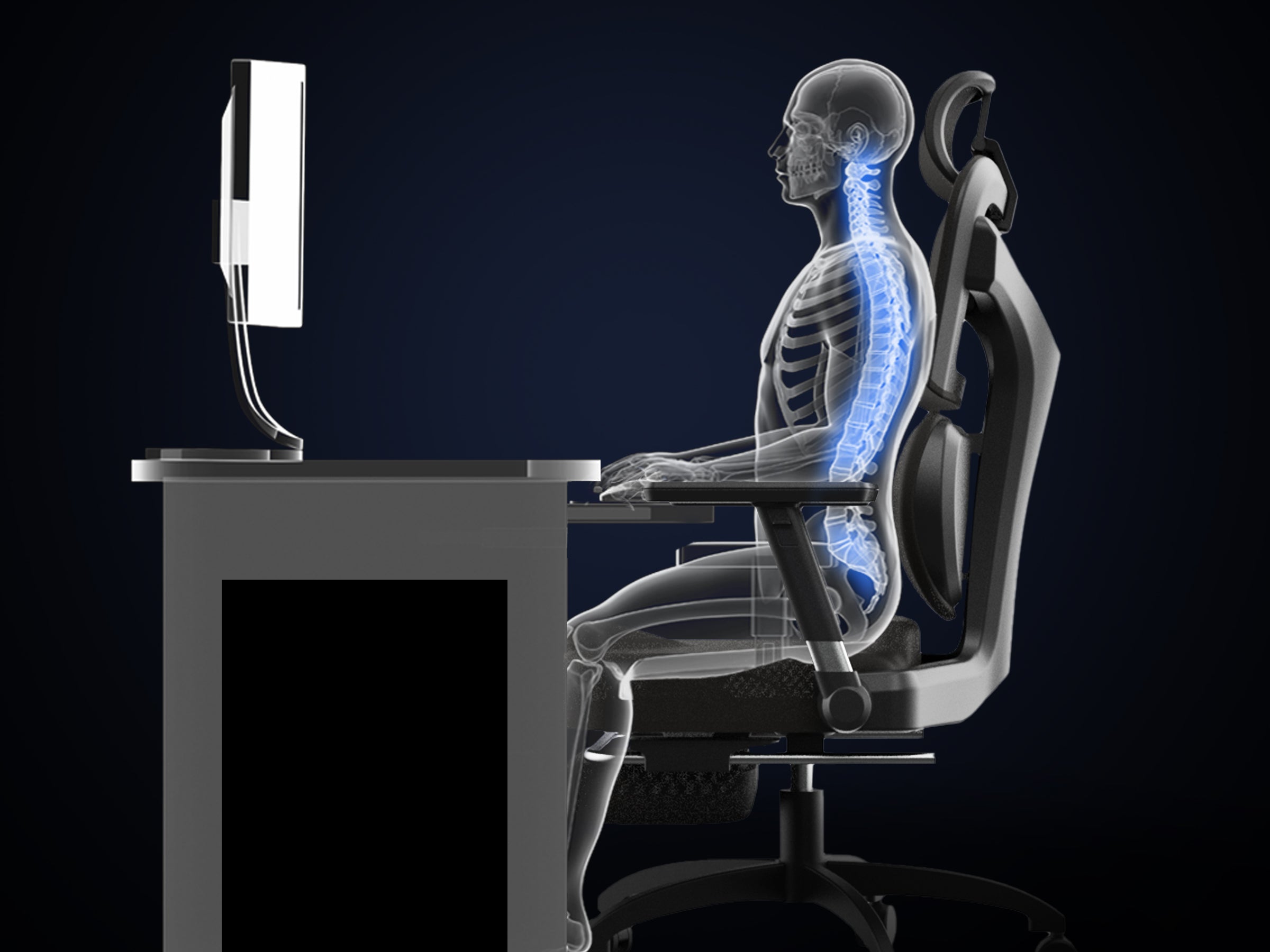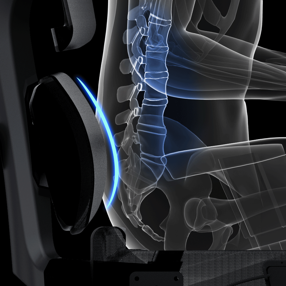專利氣壓腰靠設計,輕輕一拉自動找到腰椎位置,緊密貼合穩固支撐,讓坐姿長期保持S型自然放鬆,釋放腰椎壓力。