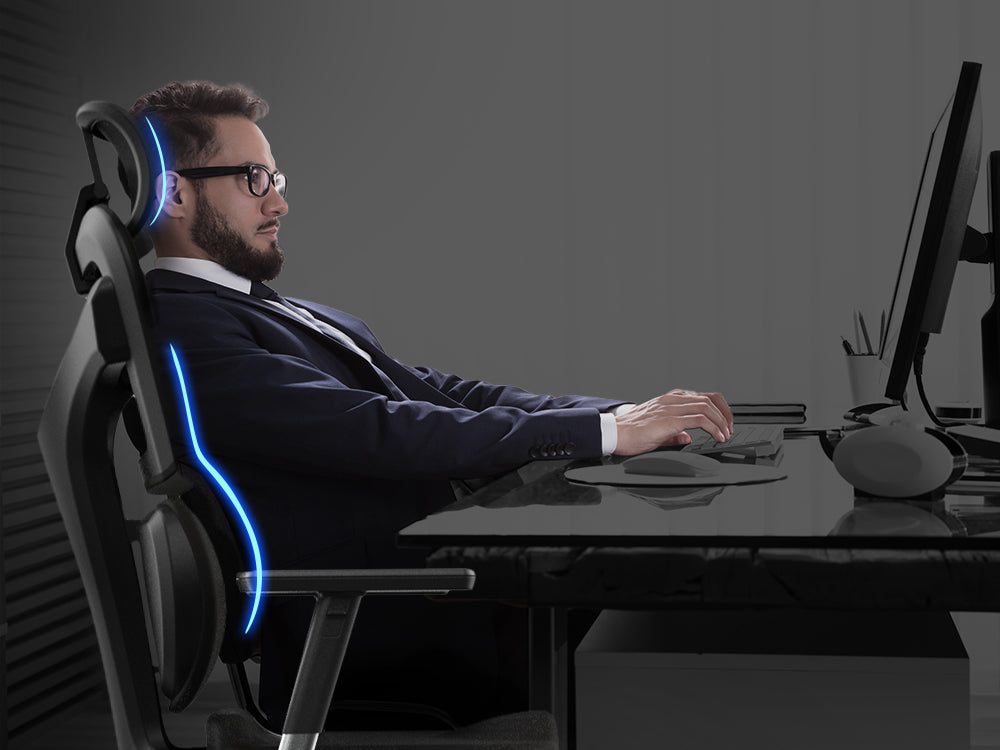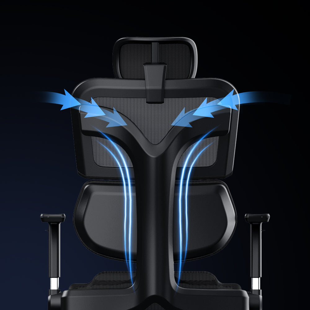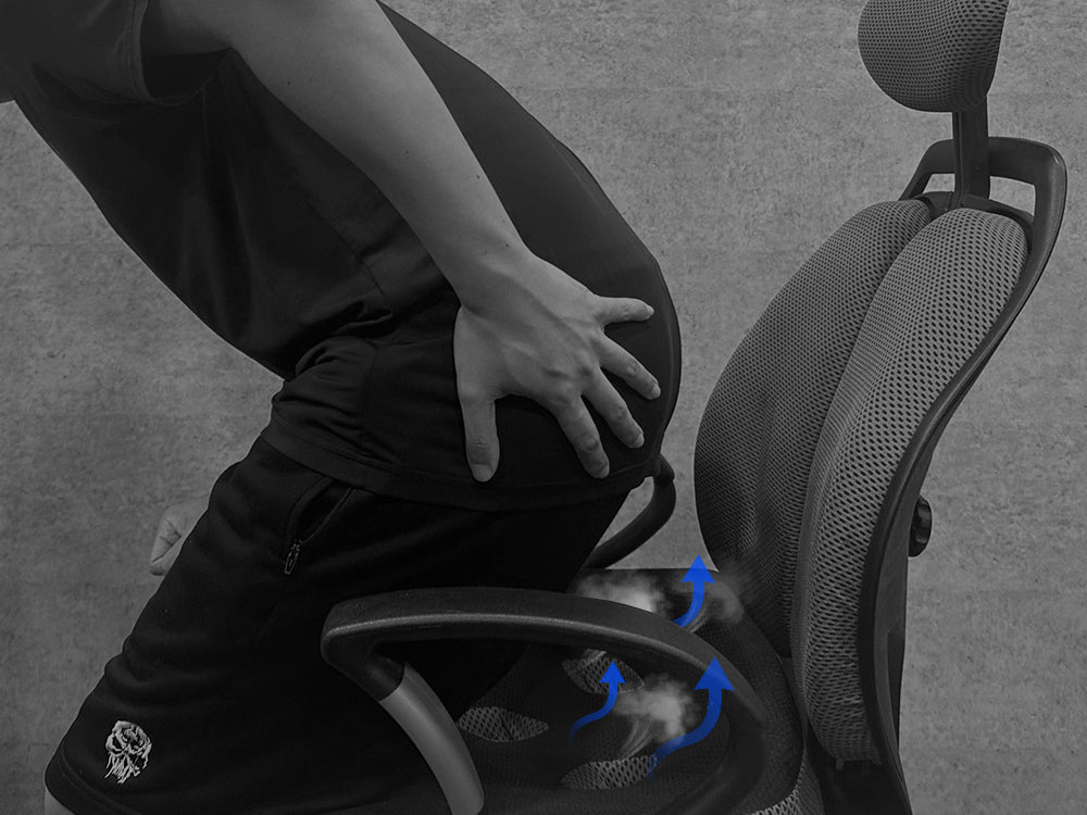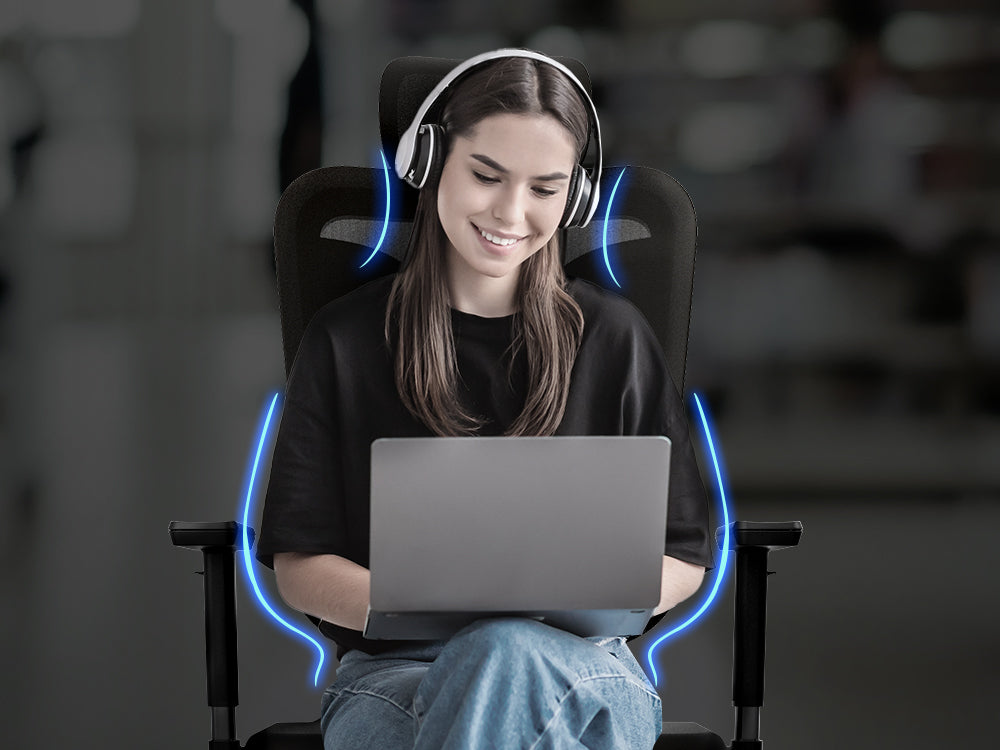 曲面獨立背靠支撐,Y型結構分散背部壓力,猶如被雙手輕輕承托住背部,維持自然放鬆曲線。