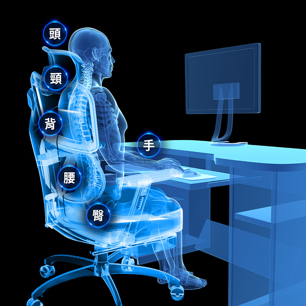 採用NASA航太科技發明的特殊材質,貼合脊椎曲線減緩對血管神經的壓力,提供無重力的坐姿感受,久坐不塌達到最大舒壓效果。