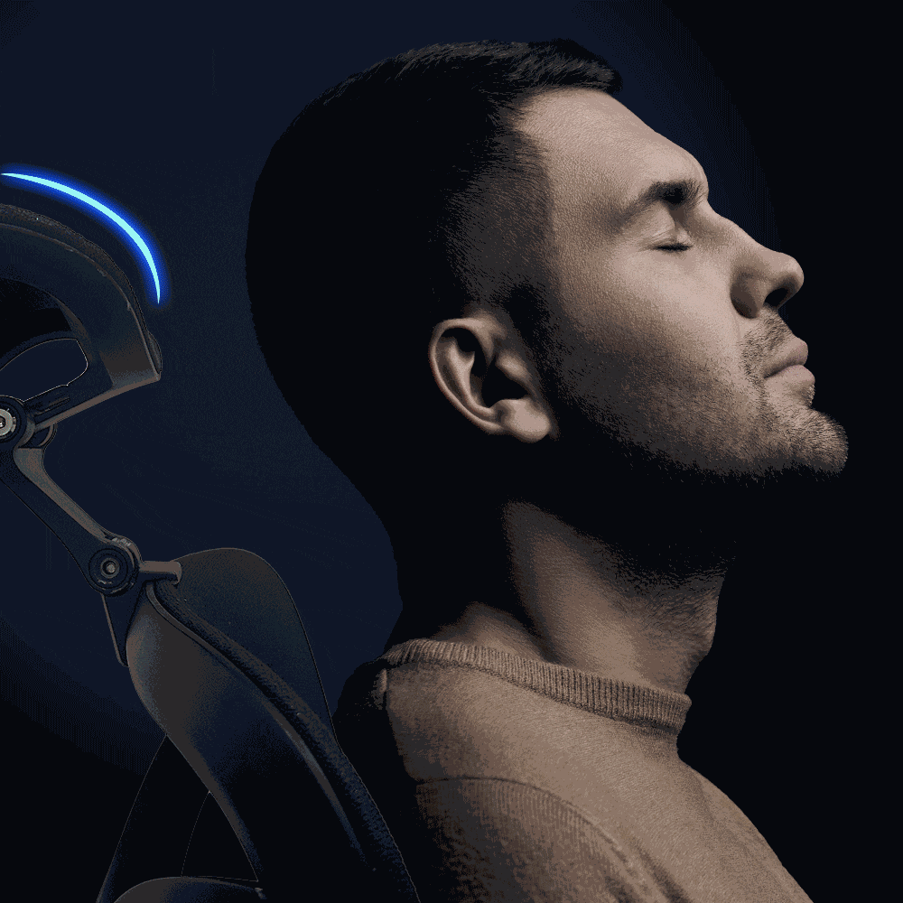 3D頭靠高低自由調整,深入服貼頸椎給予強力支撐,不同身型使用者都能找到完美支撐角度。