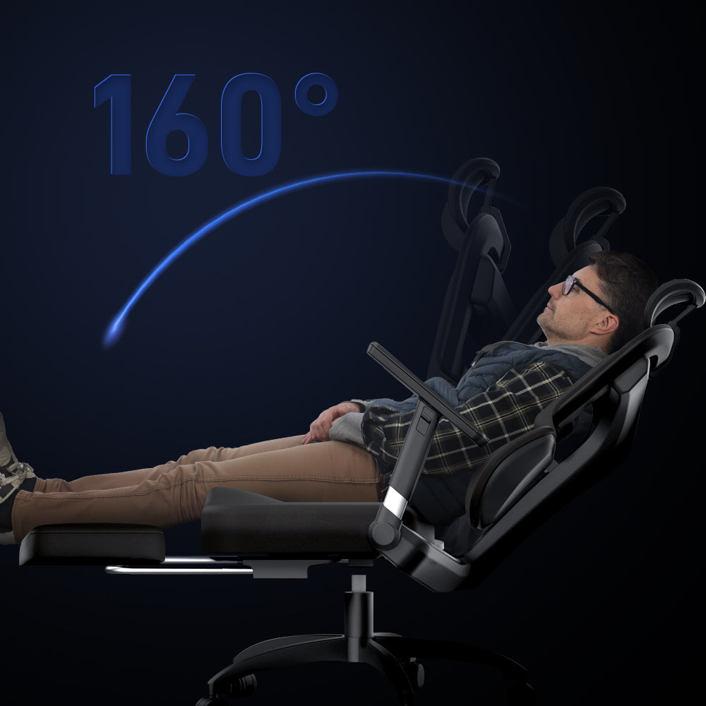 傾仰裝置根據傾仰角度及身體重心主動提供即時支撐,貼合不同人身形提供動態脊椎支撐,搭配腿靠支撐,全身放鬆延伸安心仰躺休息。