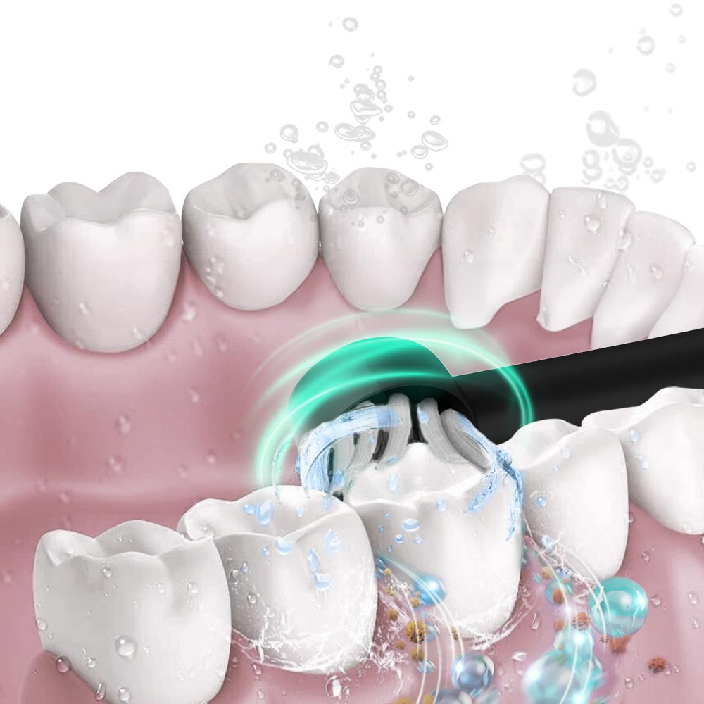 最高可達12000轉/分鐘,針對口腔死角、牙齒縫隙進行深層清潔,有效去除牙菌斑,並針對牙齒表面進行拋光清潔及牙齦按摩