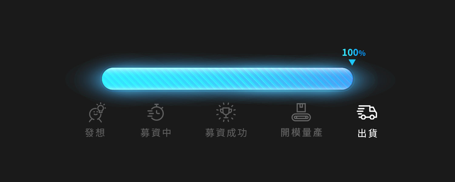 感謝您參與此次的募資活動,商品已完成量產作業,近日將陸續出貨交到每一位支持我們的顧客手中喔!