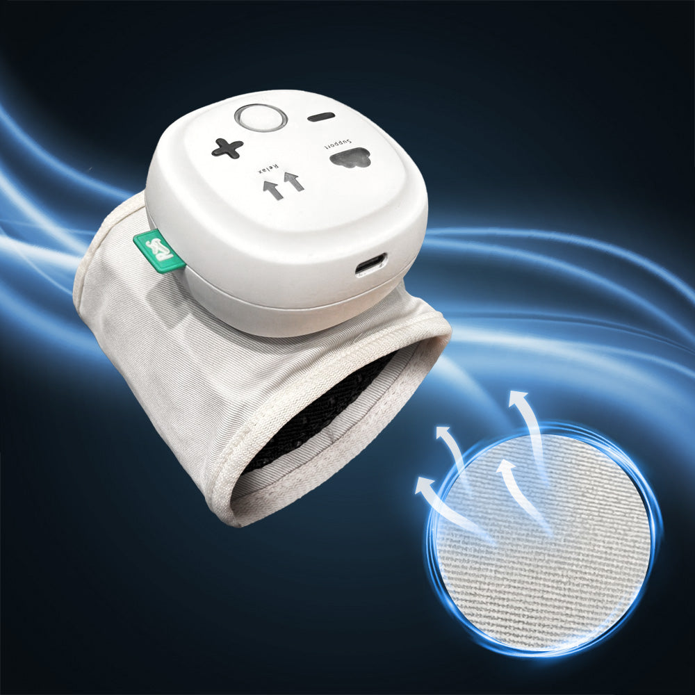 透過充放氣調整下方氣囊高度,有效支撐手腕、減少手腕與桌面之間的空隙,避免懸空造成的不適。無論是長時間操作電腦或書寫,都能提供強力支撐,輕便體積整天配戴也舒適