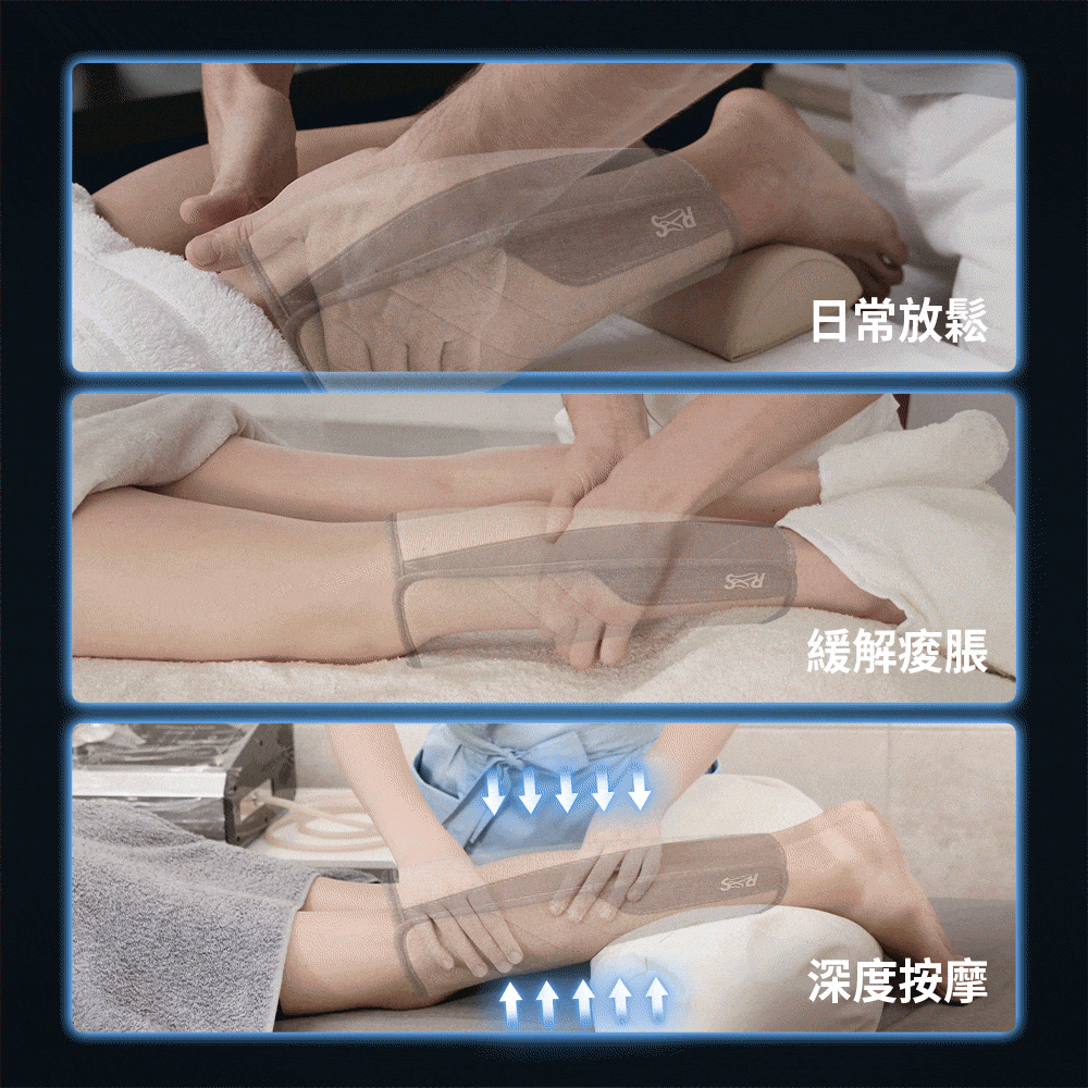 1.日常放鬆:小腿兩側與後側氣囊交替充放氣形成組合按摩動作,釋放日常壓力,促進血液循環