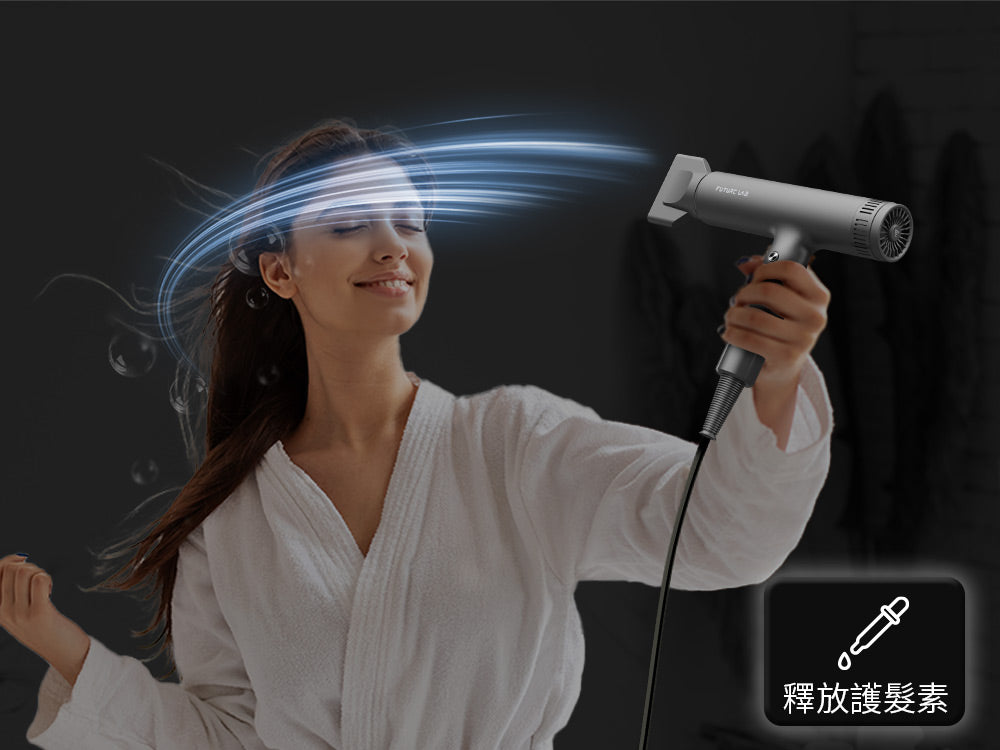 每秒釋放500萬負離子,搭配護髮香氛精油霧化分子,香氛精油養護秀髮,負離子加濕給水,形成保護層鎖住水份留住養分,雙重修護效果加倍!吹乾頭髮更柔順不易打結,把握每分每秒吹髮時間,享受吹髮的療癒時光。