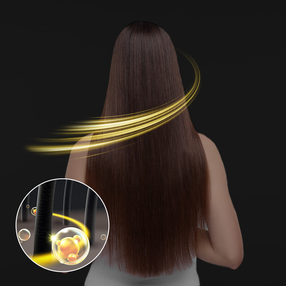 加熱後的護髮油分子化,從髮根到髮絲,零死角深層修護,護髮油發揮極致效能,擺脫日常吹髮毛躁靜電,頭髮吹乾光澤保濕又輕盈蓬鬆。