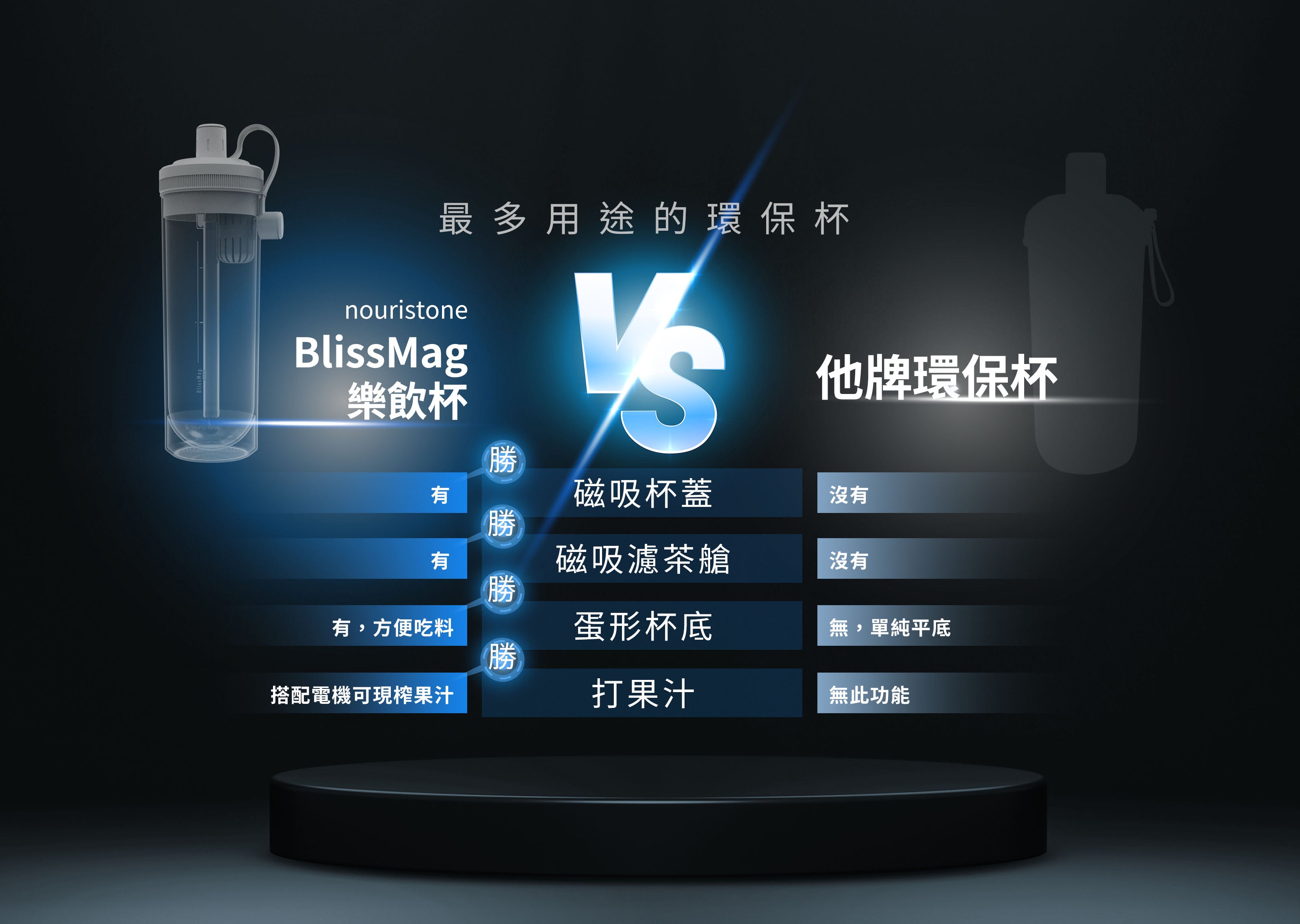 加上電動主機,環保杯也能化身隨身榨汁杯,60秒快速獲得新鮮果汁。