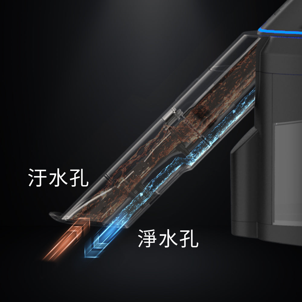吸起灰塵髒水時,獨家緊繃壓力回吸技術,污水不倒灌,維持淨水輸出。