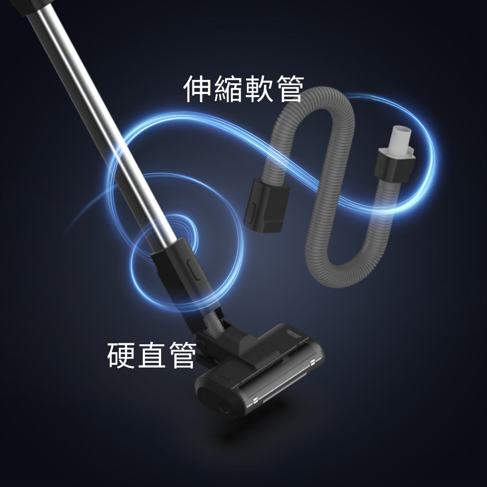 內附兩種吸塵管,依照不同情境搭配沒有清不到的地方,伸縮軟管設計,讓你輕鬆打掃高處看不見的角落。