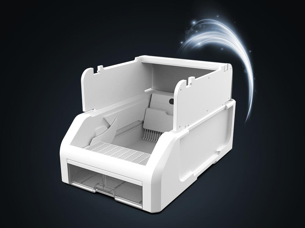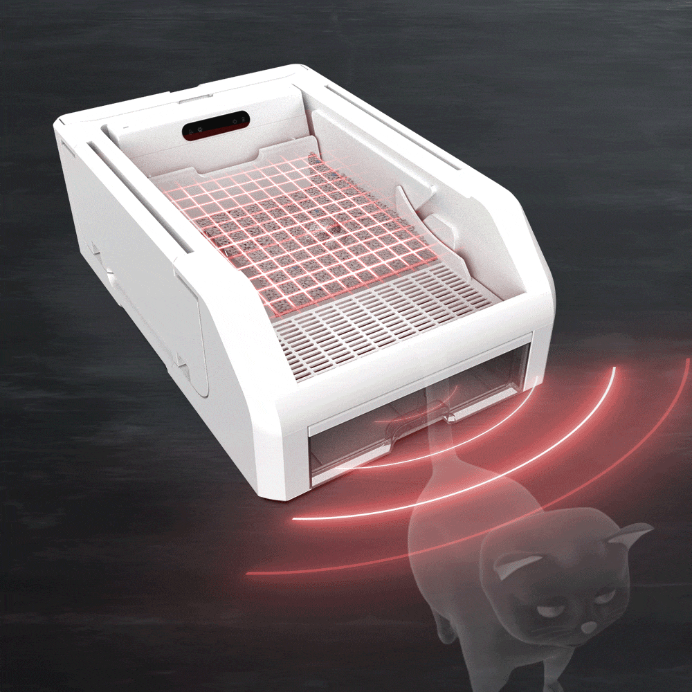 紅外線偵測貓咪進出,自動感應並即時清理貓砂,隨時維護乾淨整潔的空間。省去每日鏟砂的時間與精力,利用多出來的時間陪伴貓咪~