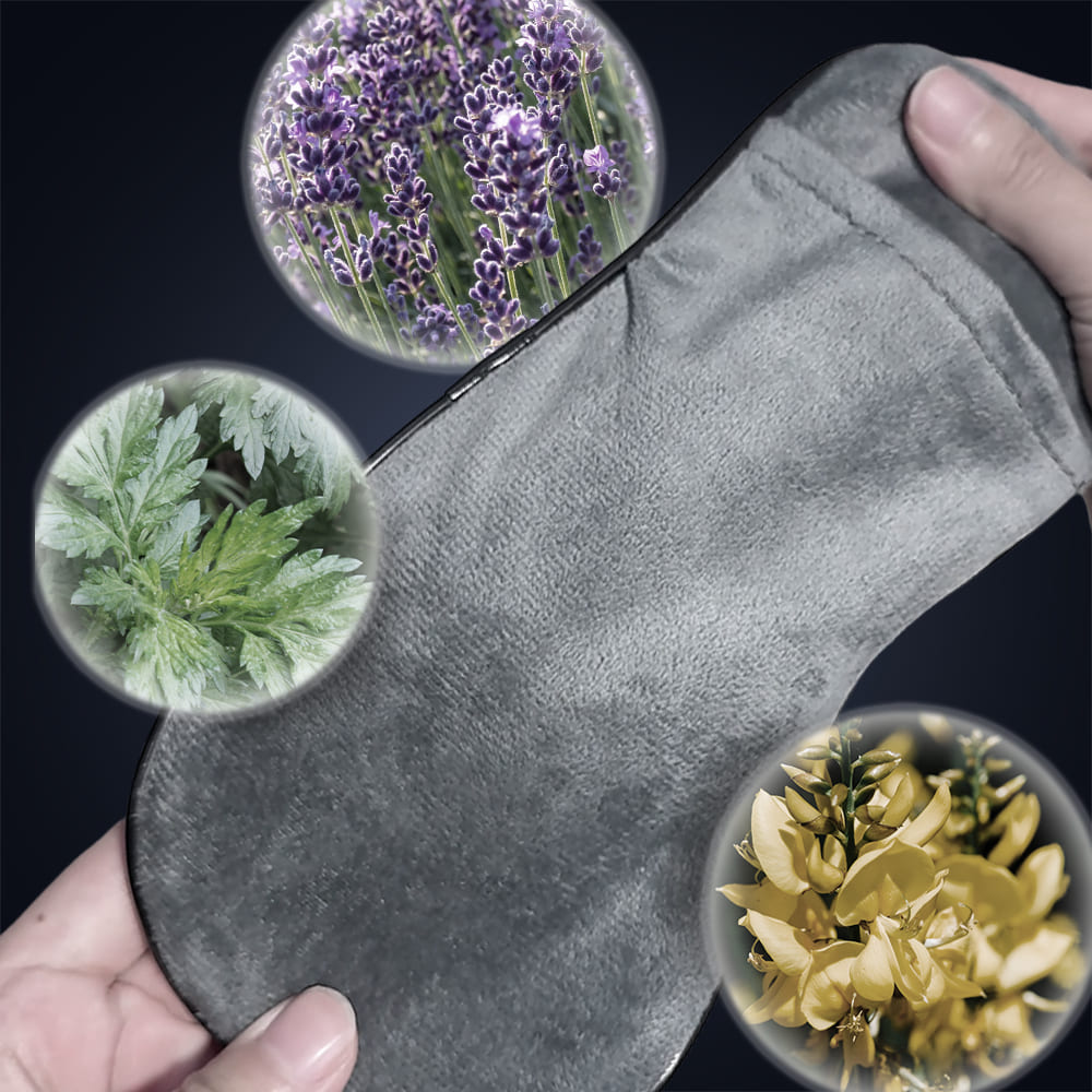 內建一個香氛袋空間,可以放入自己喜歡的花草包、香氛包。加進幫助入眠的香草,如薰衣草、艾草、決明子,透過加熱,熱氣薰出香氣,釋放眼睛疲勞,在自己喜愛的香氣中安穩入睡。
