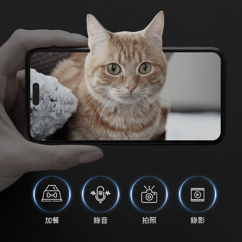 .通過攝影鏡頭智能偵測與識別,即時掌握毛孩的動態,並開啟麥克風進行互動對話,增加與毛孩親密度