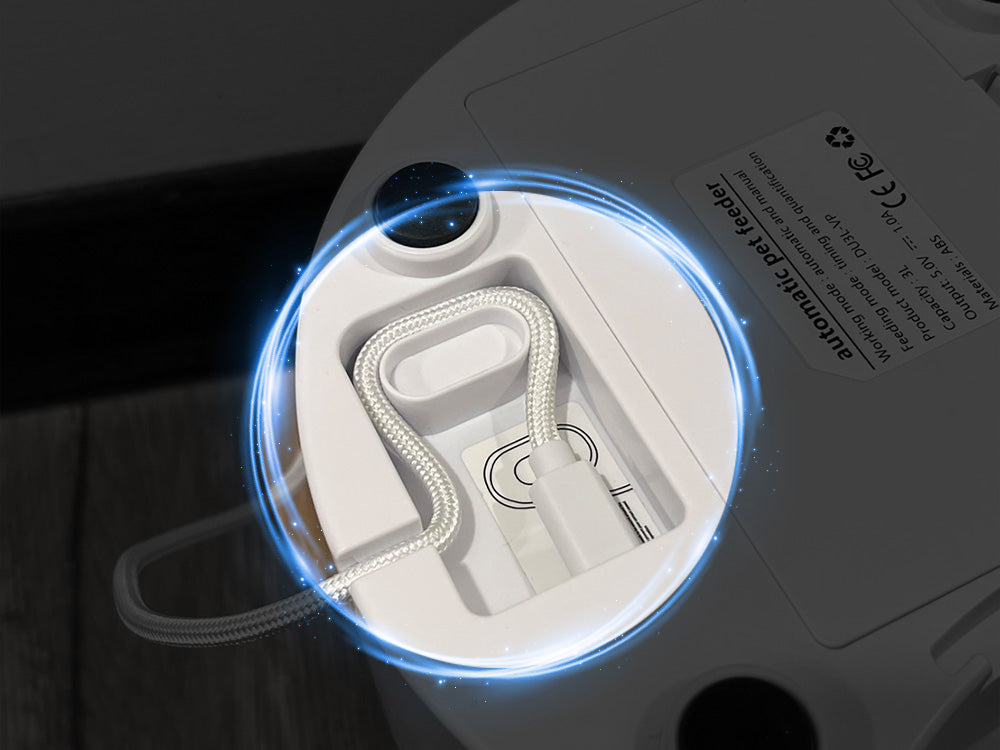 Type C充電 / 乾電池雙重供電,斷電後自動切換為電池模式,按原先計畫繼續供糧,保證毛孩不挨餓