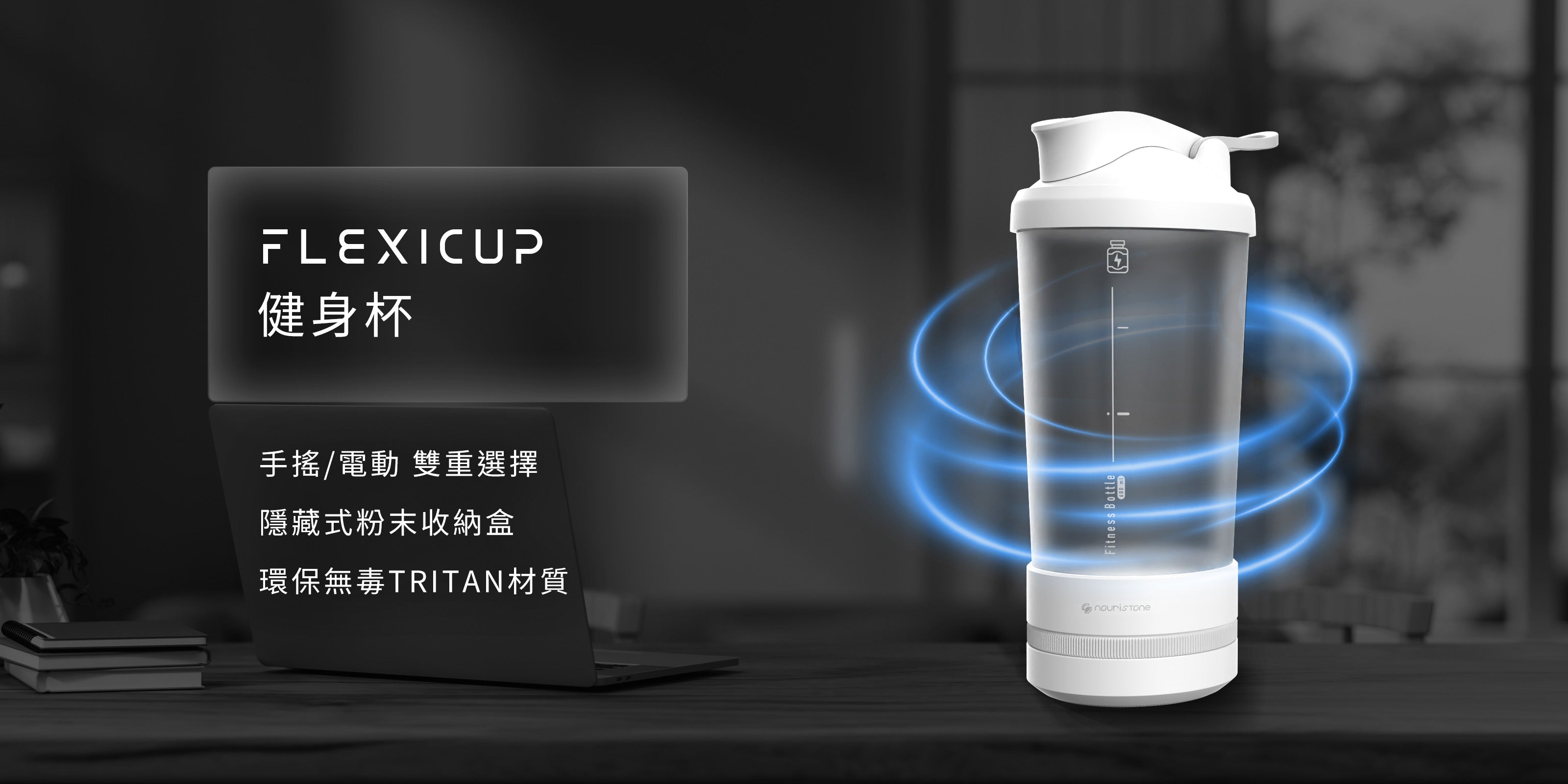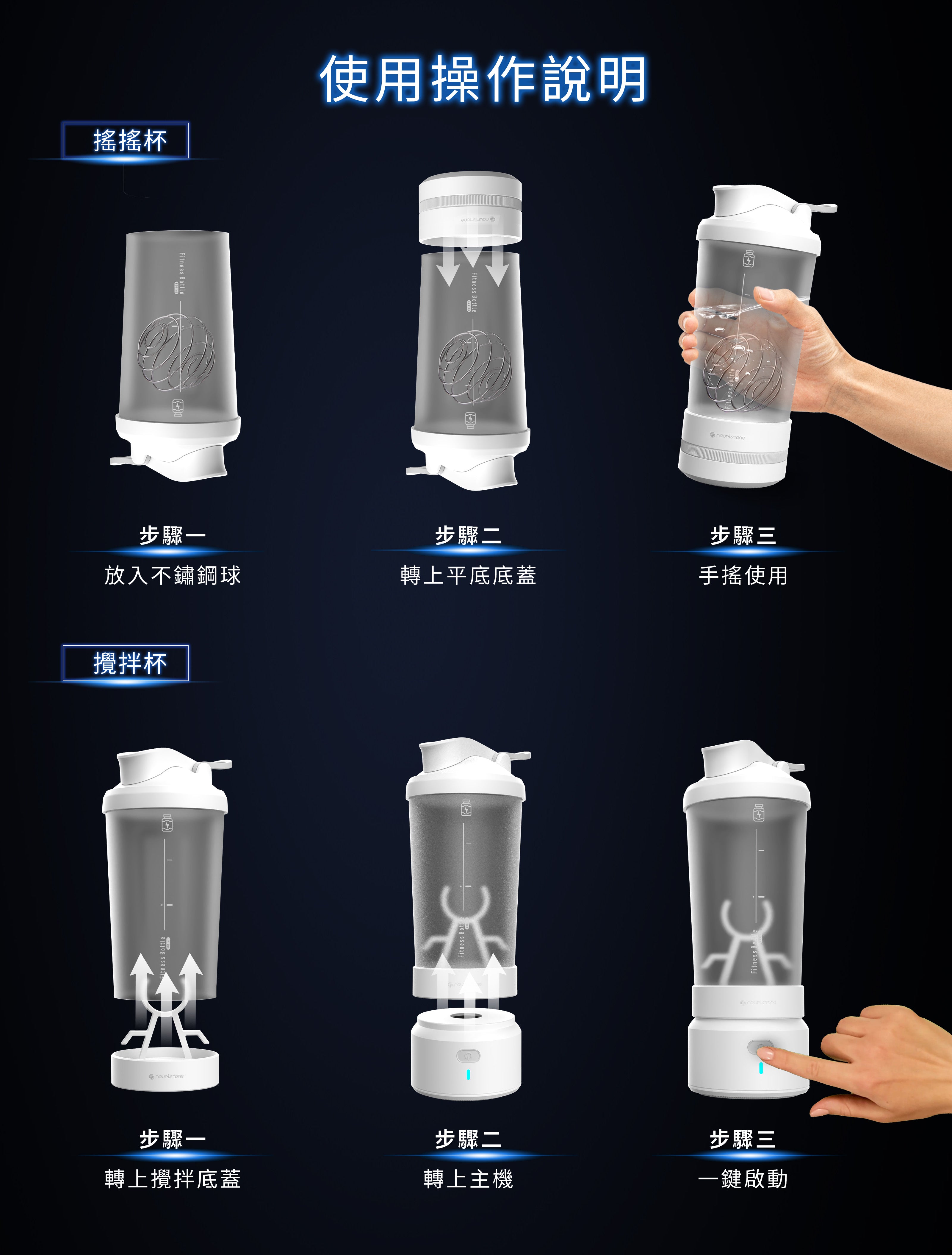 可手搖和電動的健身杯,多種操作方式,滿足各式情境使用