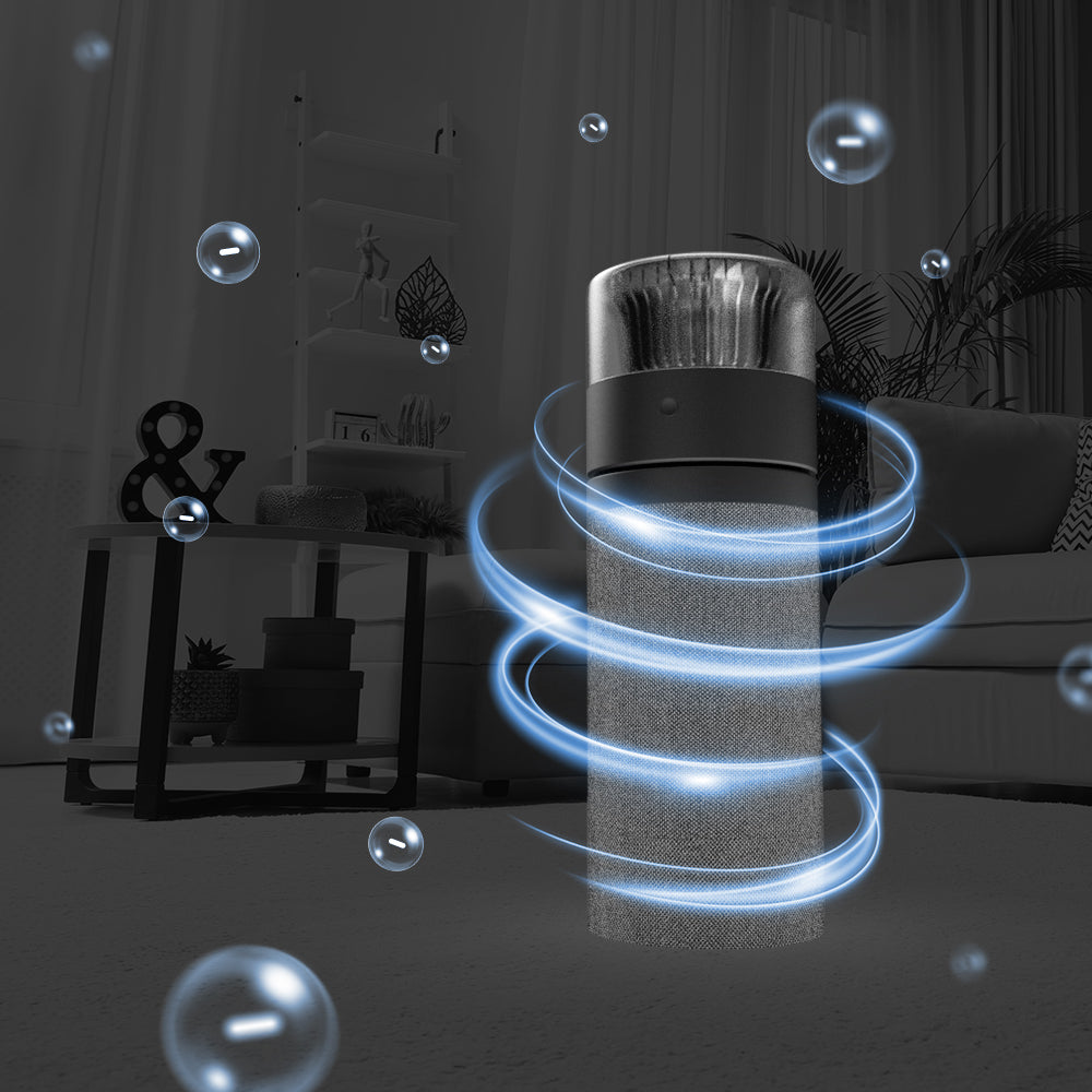 負離子針對異味消除有著顯著的效果,同時也能附著在灰塵上,讓其變重落下更好捕捉。