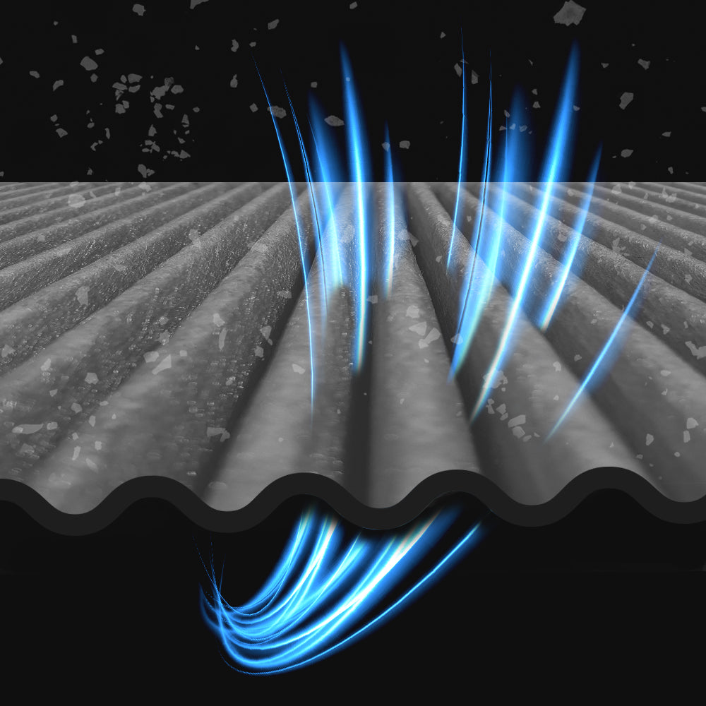 水洗式HEPA 13濾網,從灰塵到PM2.5通通不放過,奈米級縫隙能將看不見的髒污鎖在濾網上,只通過乾淨空氣。