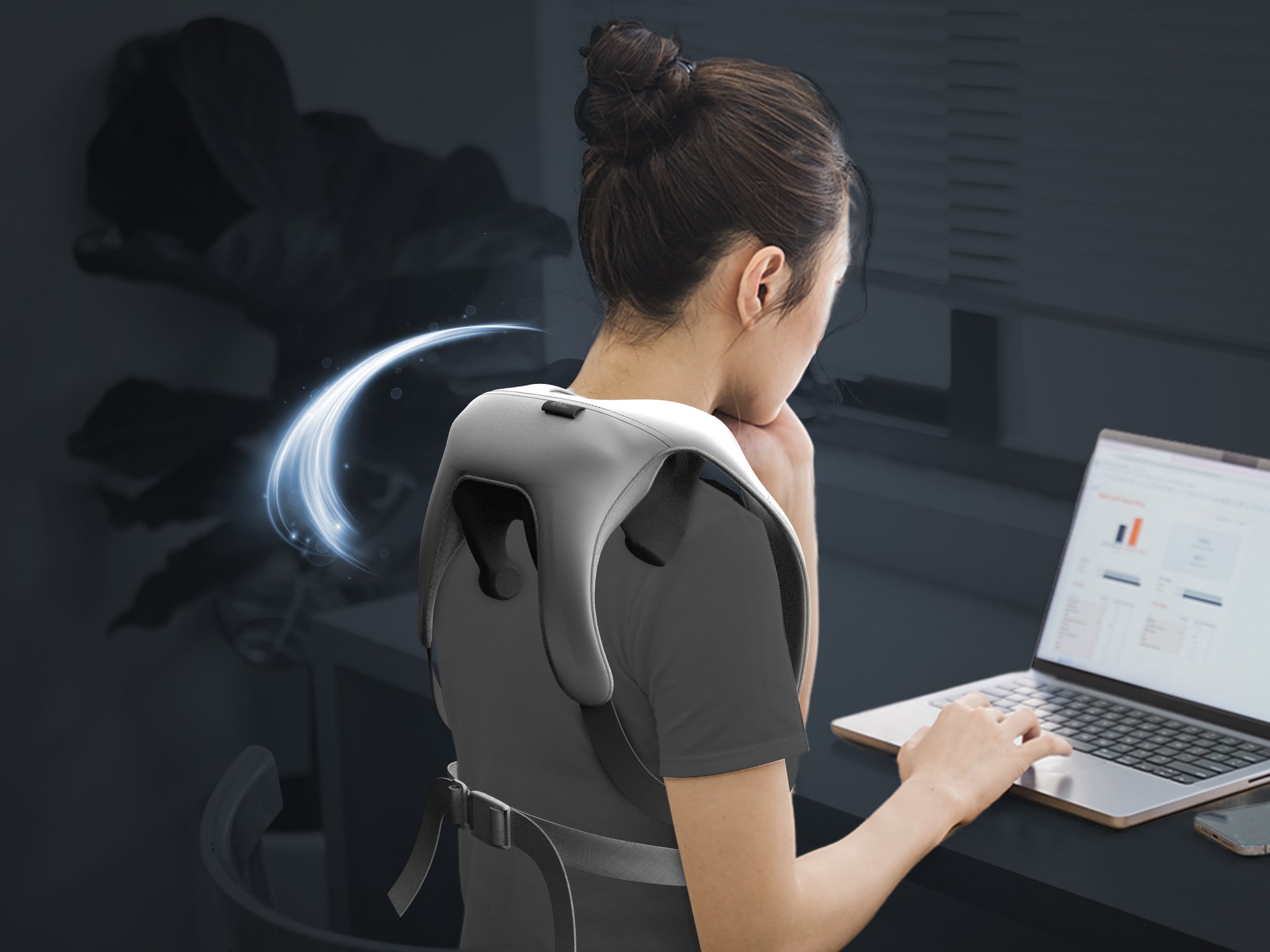 穿戴式+後背綁帶,雙重固定,也更貼合肩頸,深度按壓斜方肌,邊按摩還能邊做事,多種按摩模式適合在各種場景使用。