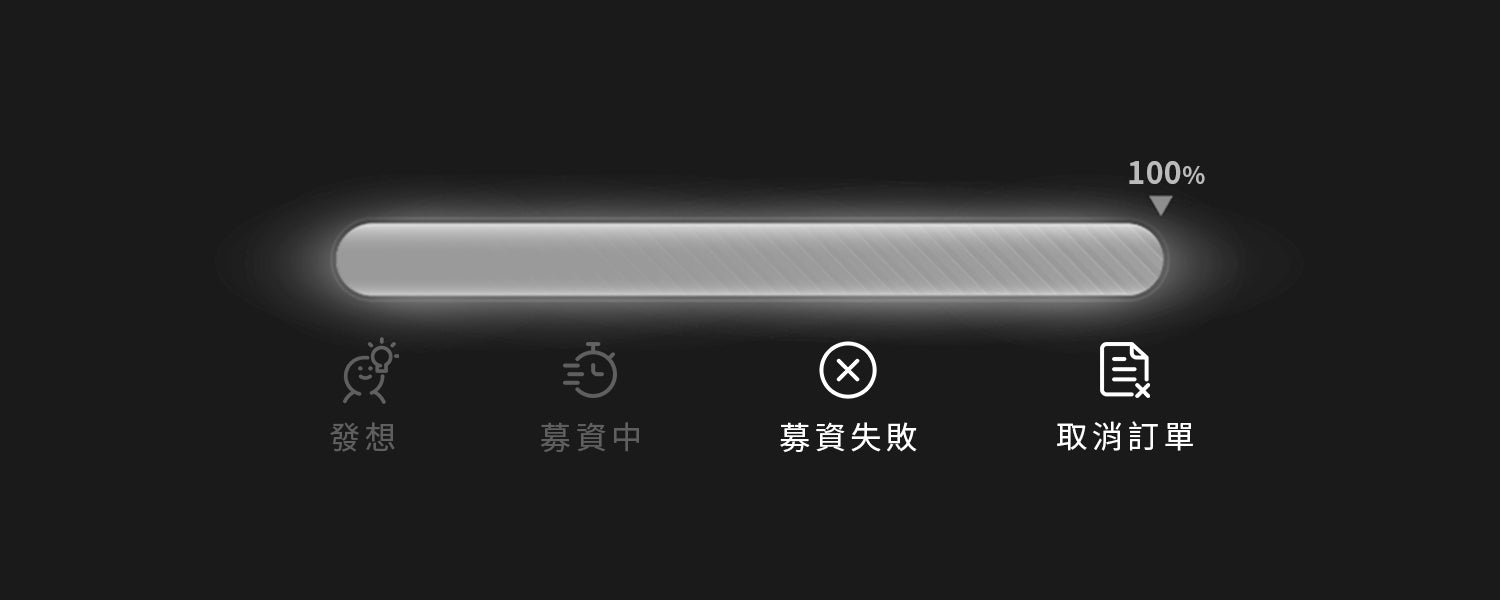 感謝您參與此次的募資,很遺憾這次募資失敗了,但我們不會因這次失敗就氣餒,未來一定會推出更多研發產品。我們將會取消這次募資訂單,信用卡付款會於7-14個工作天安排退款還請您放心,期待您未來的繼續支持。