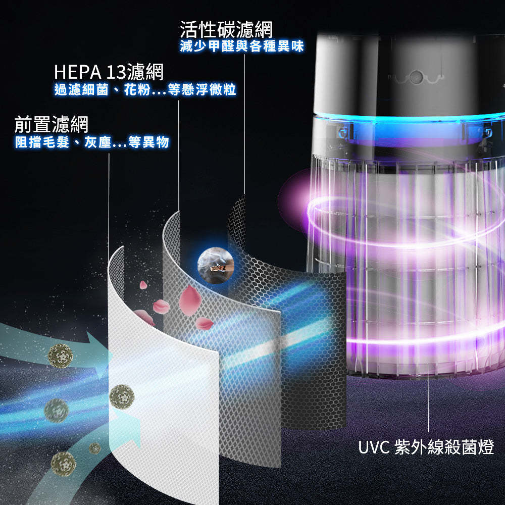 潔淨空氣輸出量CADR高達500!4重過濾高效能,奈米級縫隙將所有髒污鎖在濾網上,只釋放乾淨空氣。