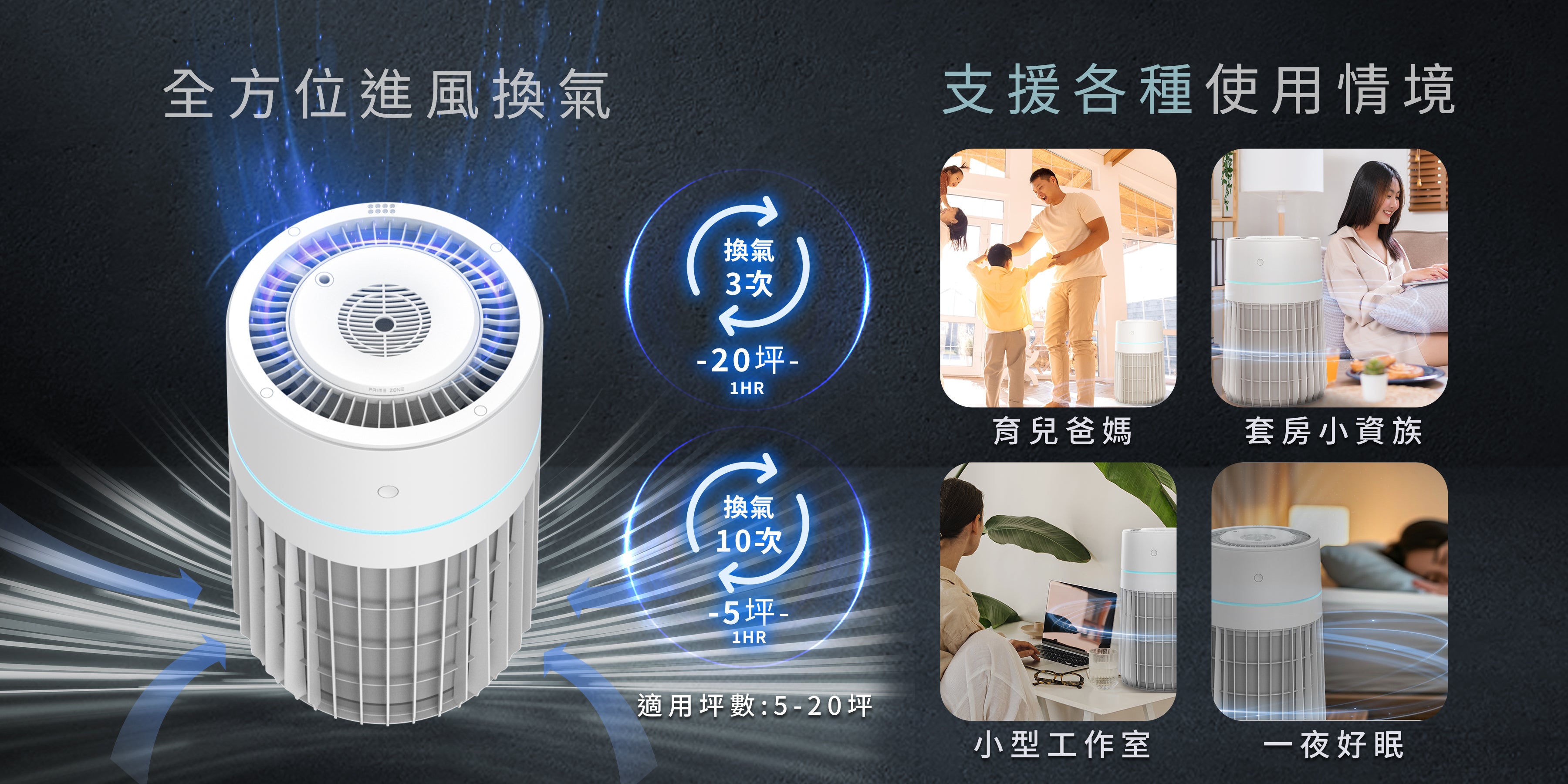 四檔風速調整,最大風速8m/s,一小時可全屋換氣10次,快速創造室內良好循環對流。
