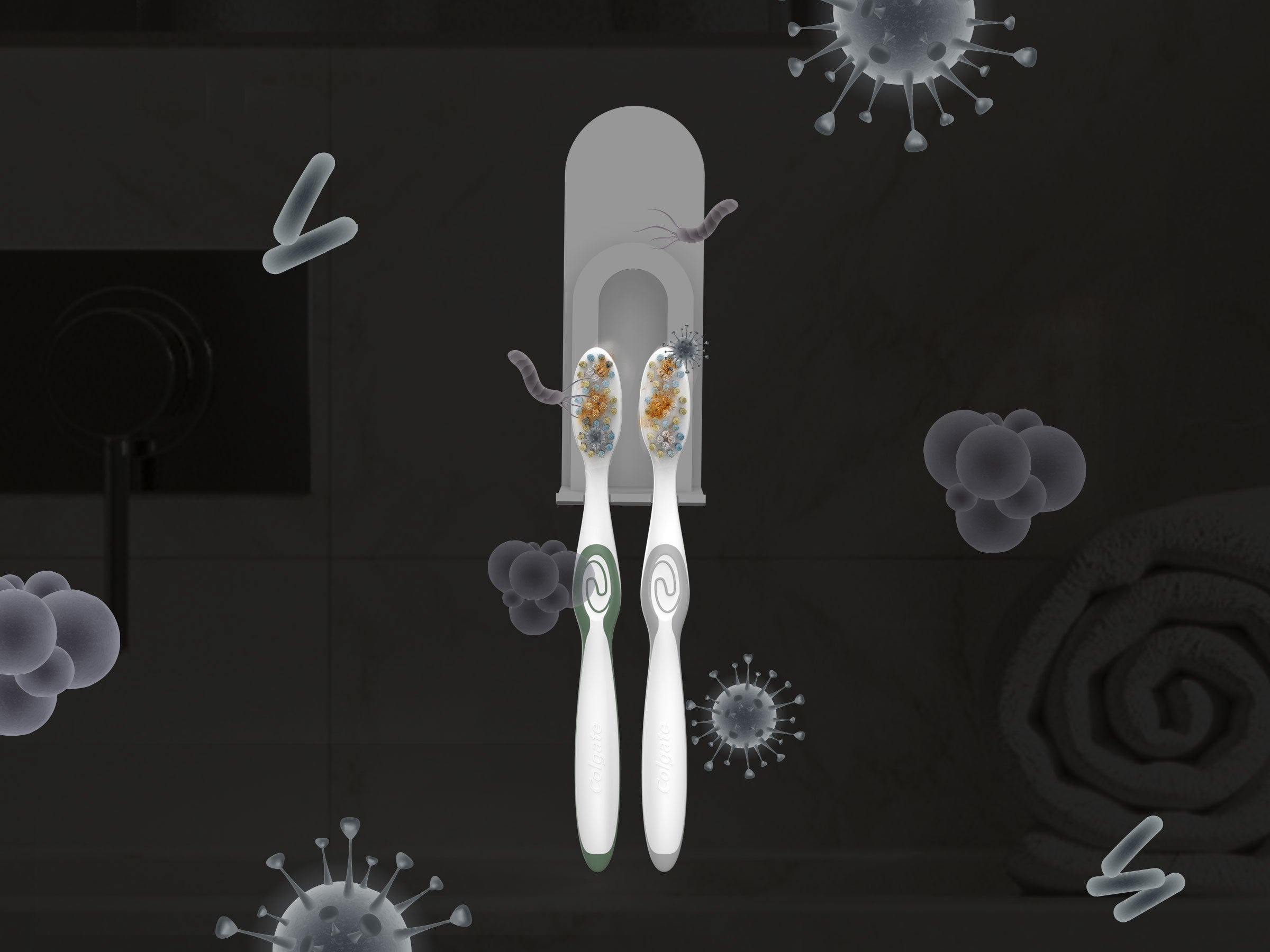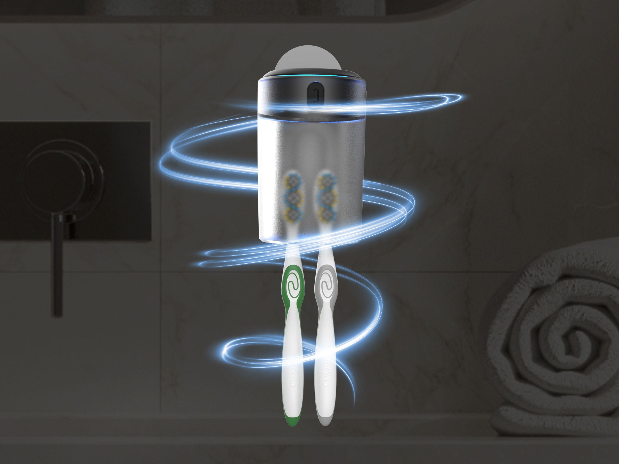 倒扣掛於牙刷架時可散發活氧氣體,同時替牙刷及水杯殺菌,快速去除牙刷刷毛中病毒、細菌,同時預防水杯生成水垢、黴菌。