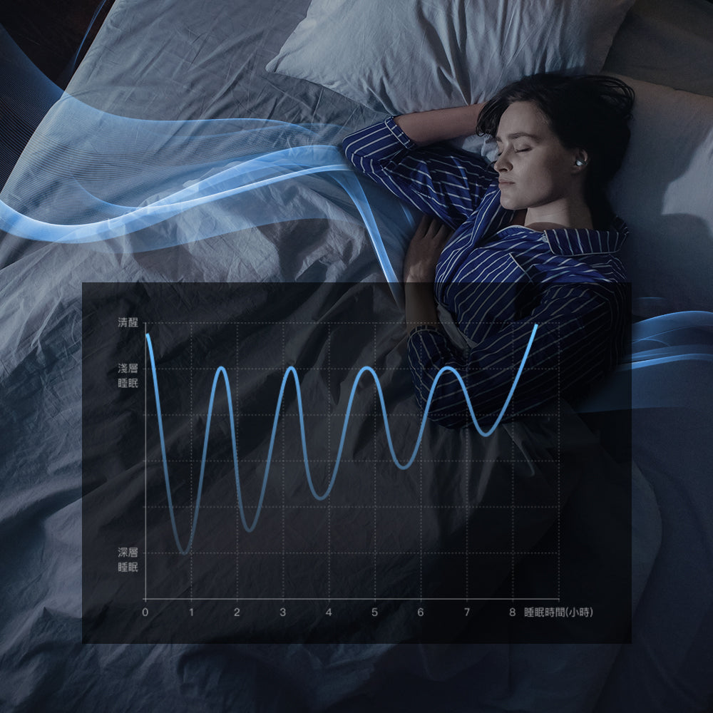 智能完整紀錄睡眠品質,夾耳式設計像沒戴般一樣舒適,怎麼翻身都不掉!