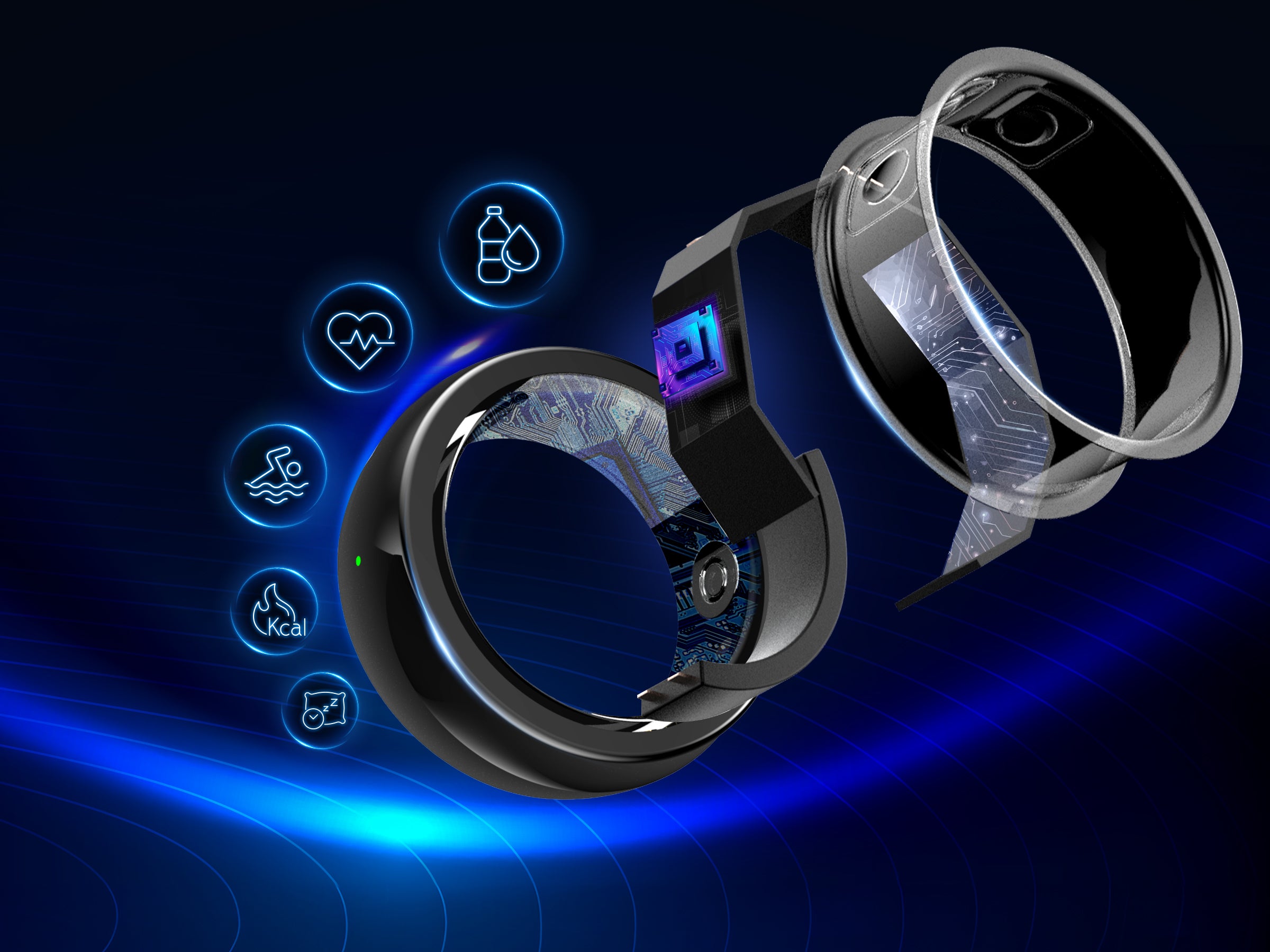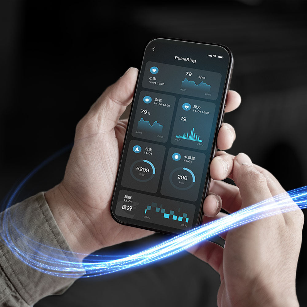 1+1>2,智慧戒指搭配專用APP,自動取得各項身體指標,數值隨時紀錄、隨時追蹤,健康生活一手掌握。