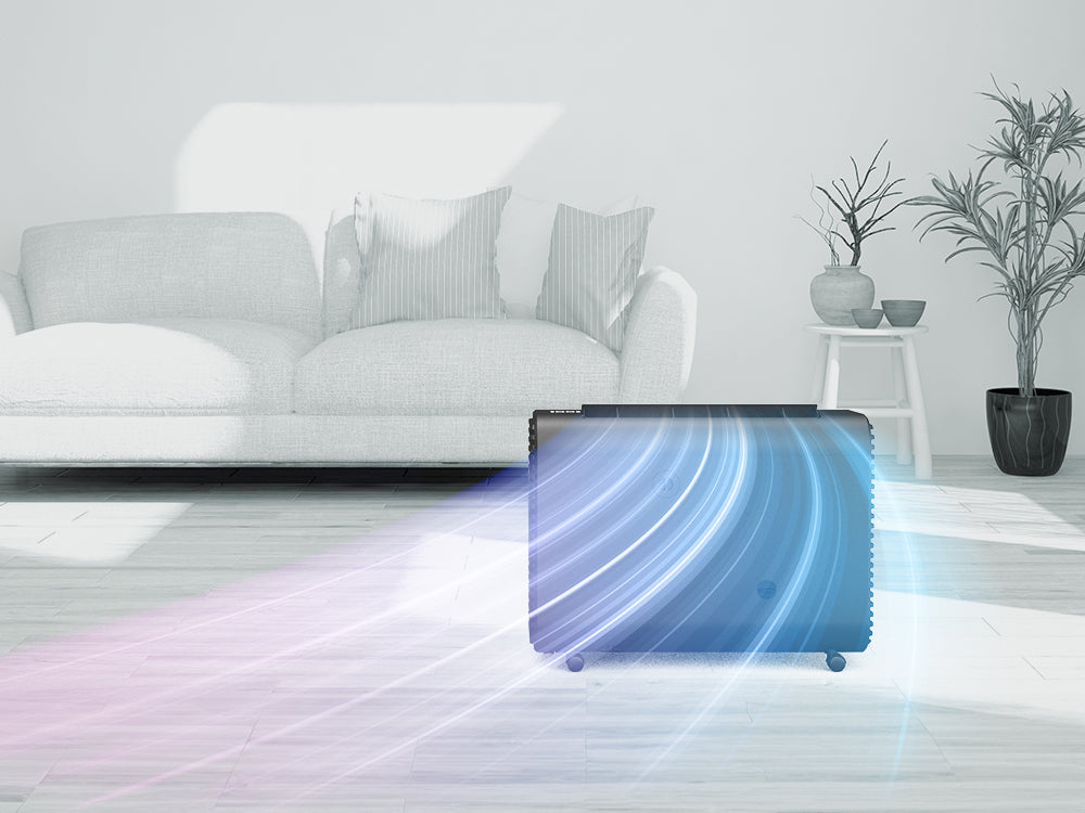 強大的15L除濕力滿足室內晾衣的需求,加大出風面積搭配貫流風道設計,雙倍出風量快速達到大空間濕度控制。