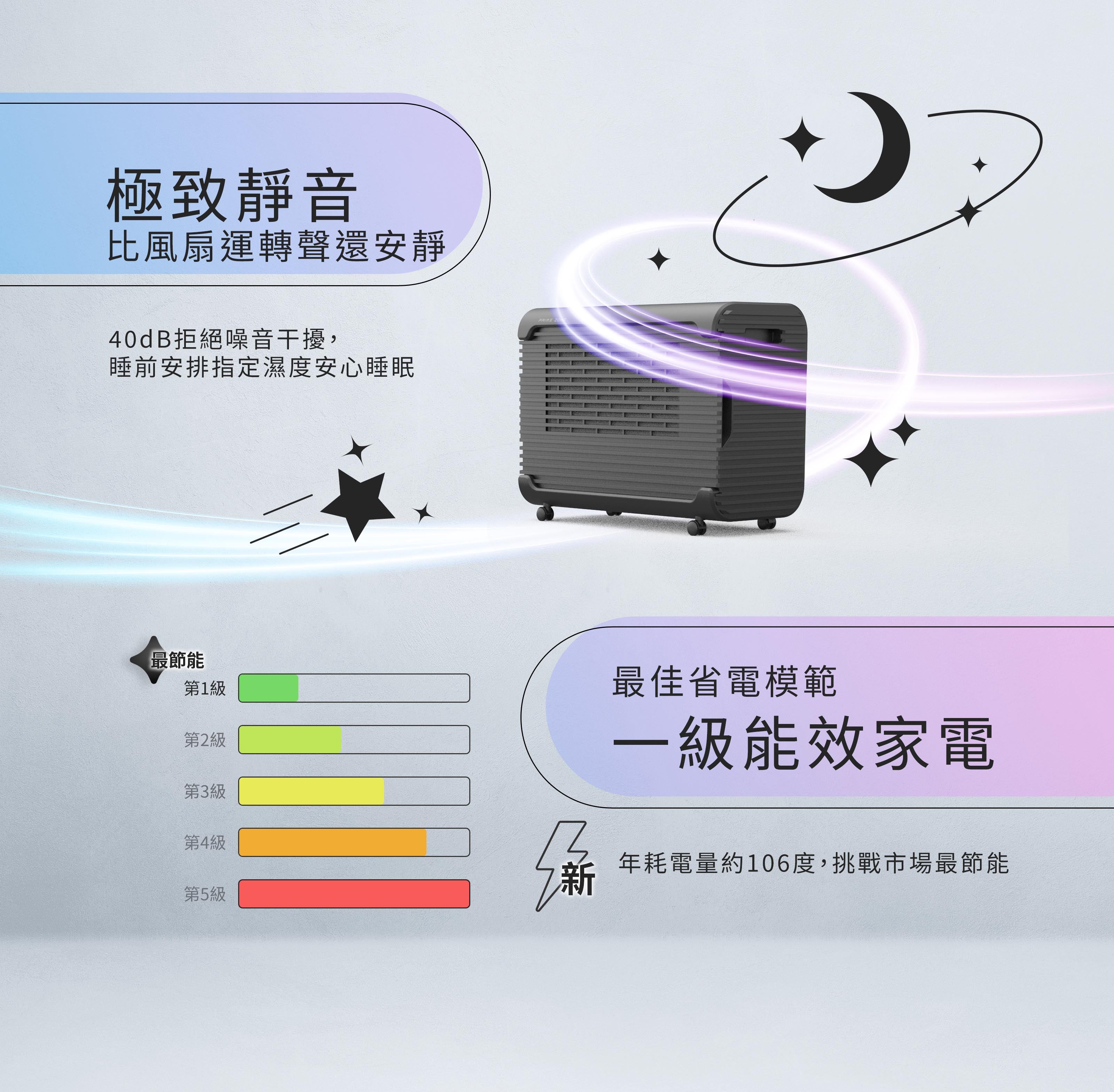 智能除濕:持續運作除濕至指定濕度自動切換空氣清淨送風模式。