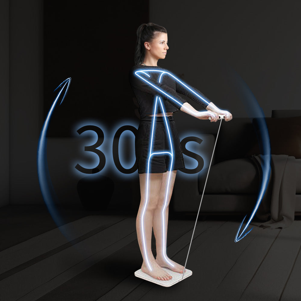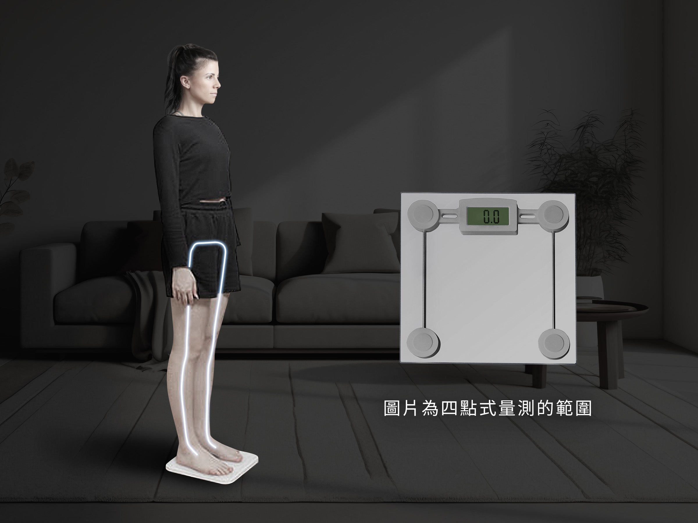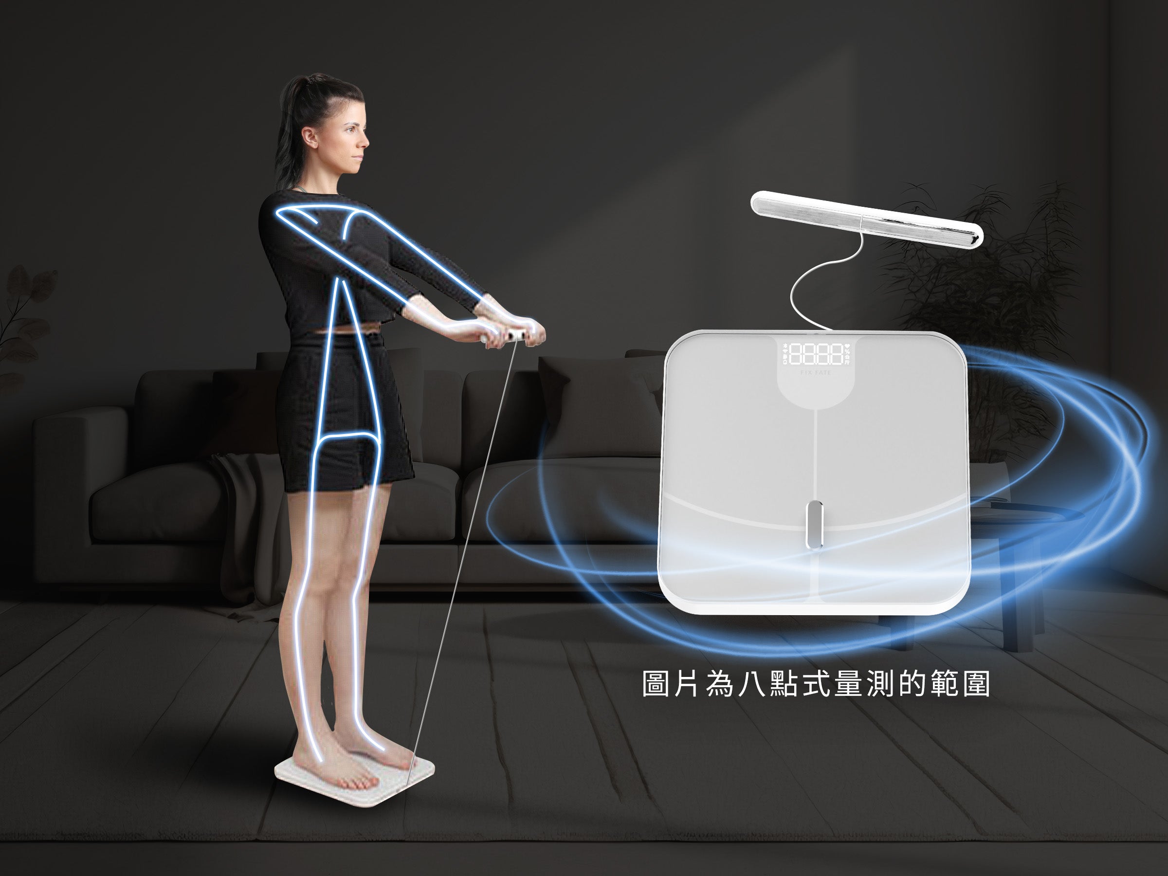 有別於一般腳踩四點式體脂計,八點式利用電極傳導,上下身分段式測量,僅需30秒立刻量出全身精準數據。