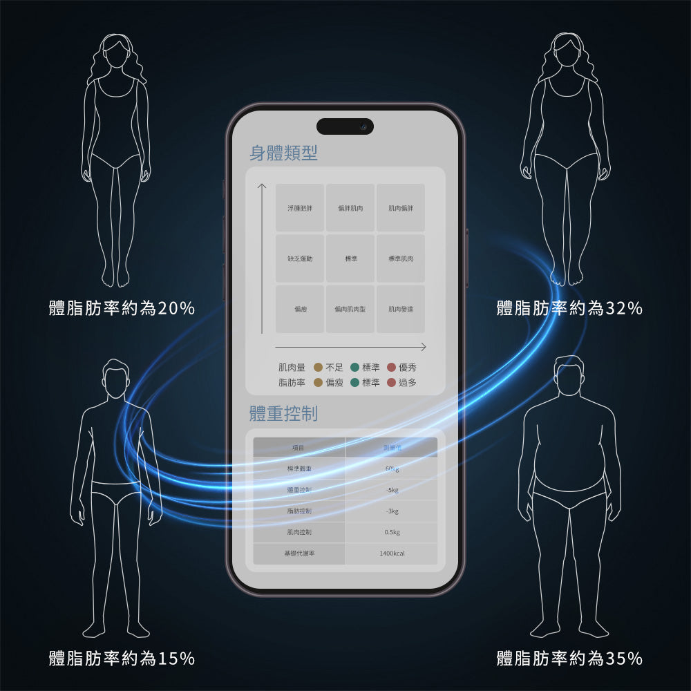 身體的組成比例會大大影響身形!脂肪的體積是肌肉的三倍,因此在相同的身高、體重下,脂肪率越低身形越精實。透過全方位檢測評估出你的身體類型,讓你每一次的鍛鍊都不浪費。