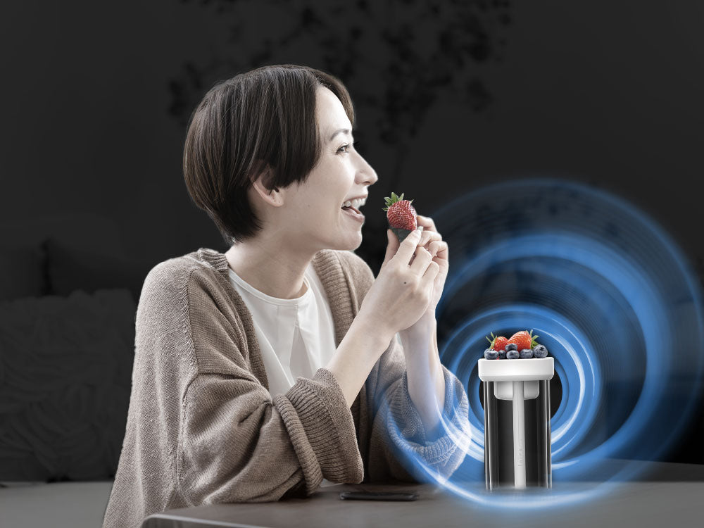 304不銹鋼八葉刀組,搭配18500rpm高轉速,60秒急速鮮榨!不只水果,就連冰塊、堅果也切的動。