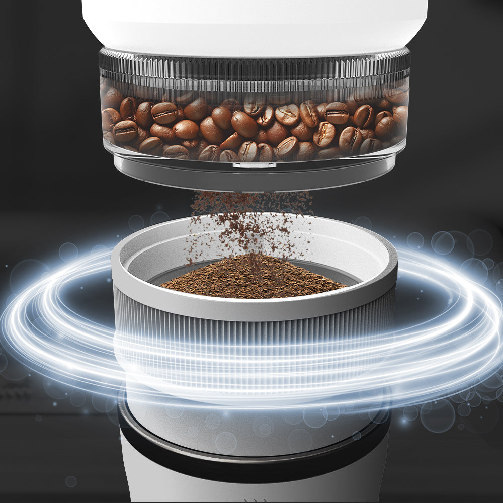 運作主機接上研磨器,搭配陶瓷磨芯,可隨喜調節研磨粗細 ,過程不卡豆、不易發熱,能保留咖啡最原始的香氣,