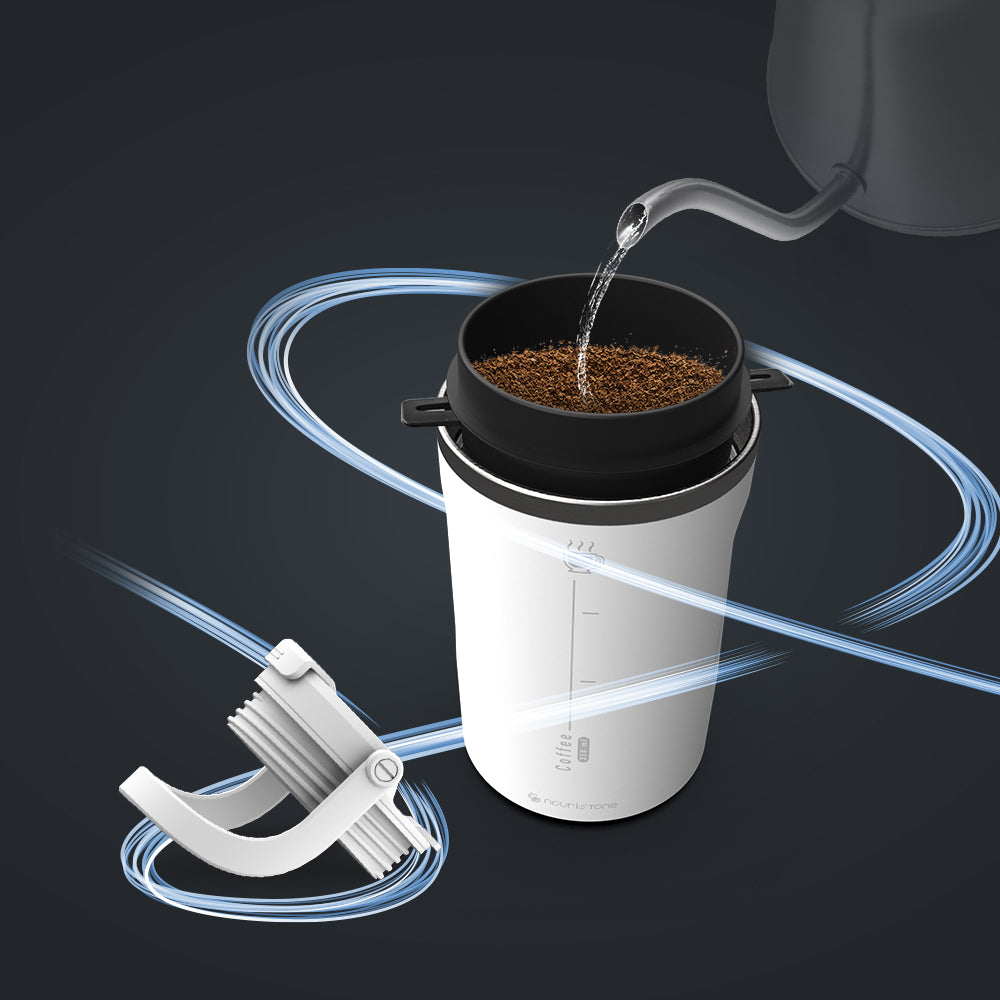 杯身使用304不鏽鋼雙層保溫設計,內壁陶瓷塗層,耐磨防刮,可直接將濾網架於杯體上做沖泡,隨時隨地享受手沖咖啡。