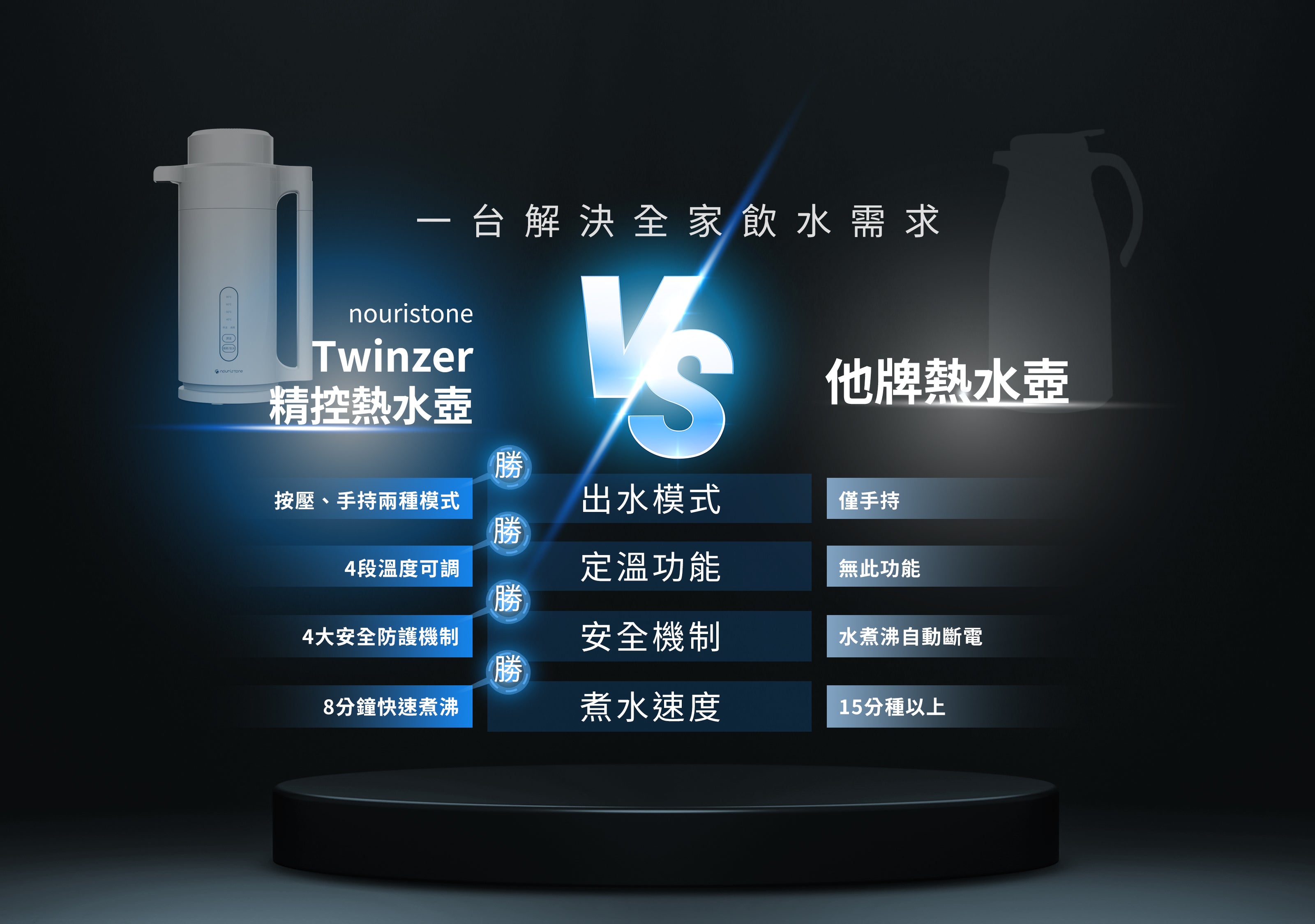 1500W大功率加熱,帶來更高的速度與效率,生水煮沸只需8分鐘,飲水不必久等。