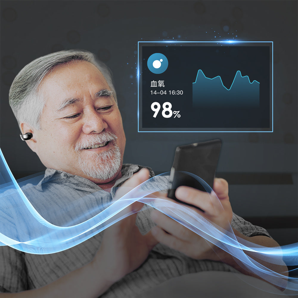 1+1>2,智能健康耳環搭配專用APP,自動取得各項身體指標,數值隨時紀錄、隨時追蹤,健康生活一手掌握。
